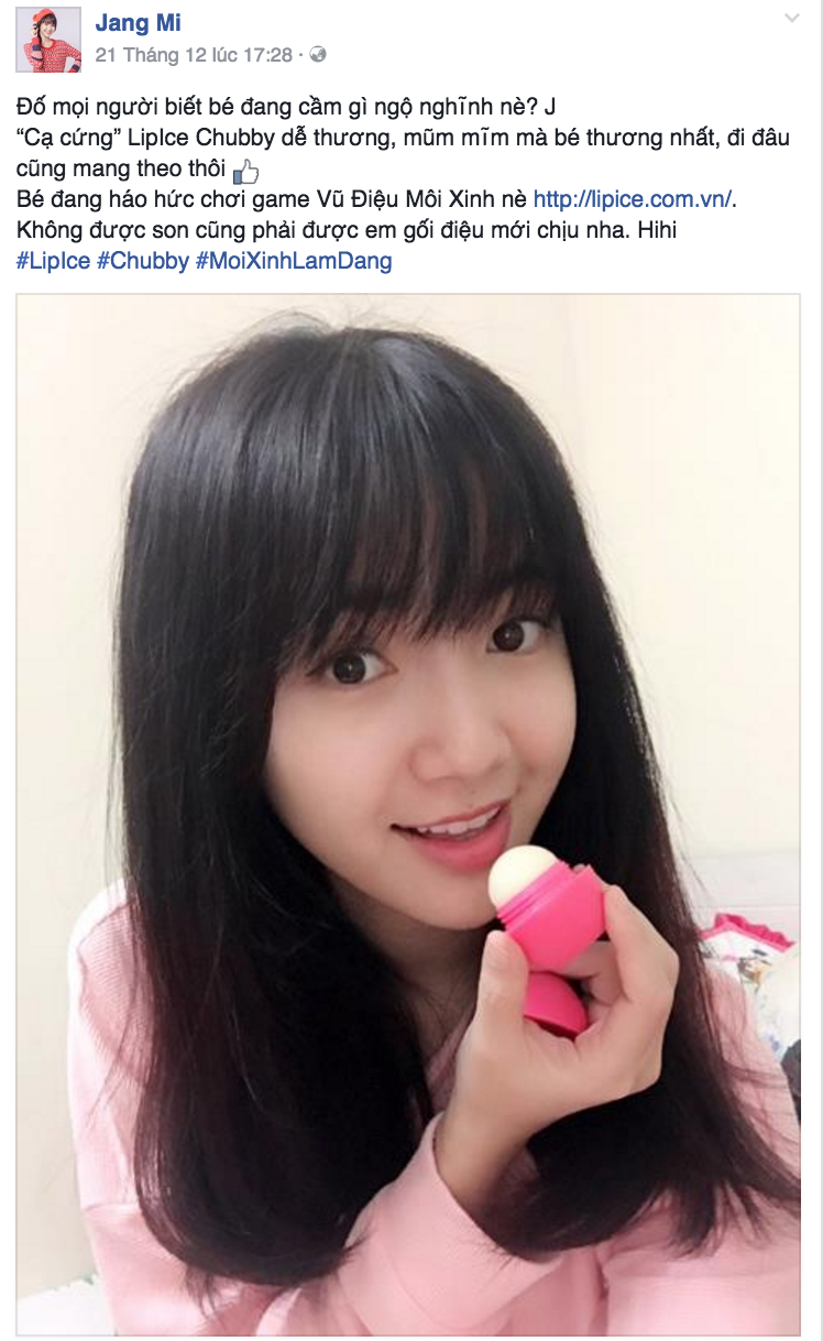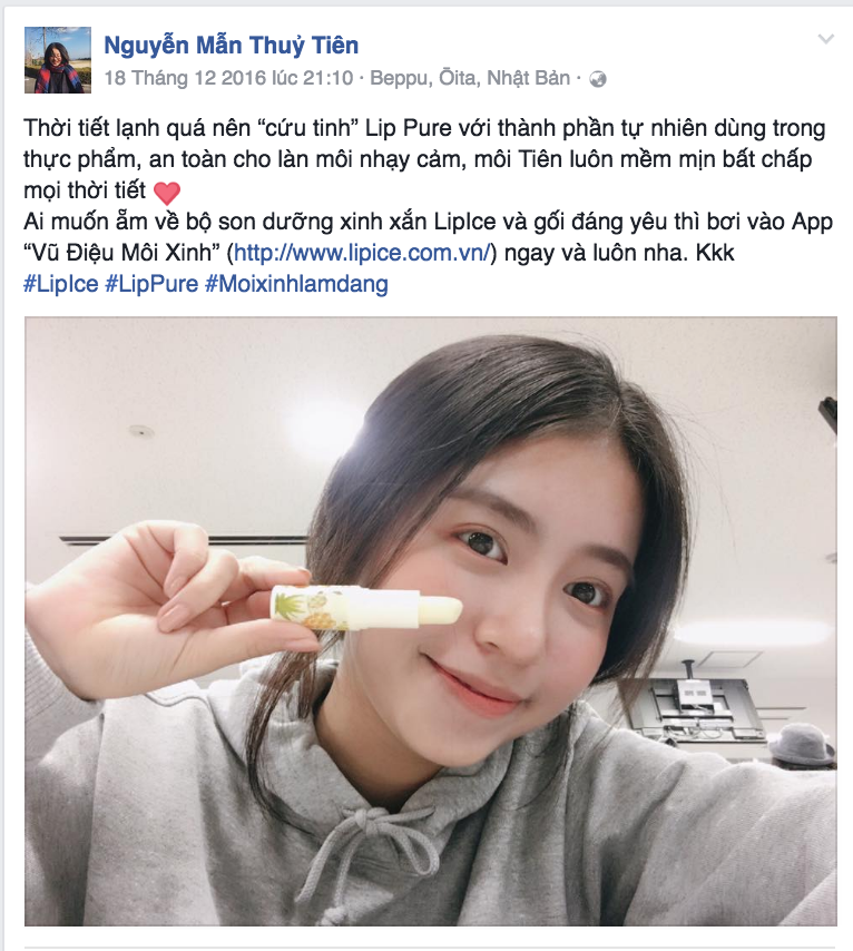 Thành phần an toàn cũng là tiêu chí hàng đầu khi lựa chọn son dưỡng của beauty blogger Ngọc Anh (Chuyên trang làm đẹp Happy Skin). Cô nàng thật sự ấn tượng với LipIce Chubby bởi các thành phần dưỡng ẩm hoàn toàn từ tự nhiên như bơ đậu mỡ, dầu olive và vitamin E - lựa chọn hoàn hảo cho đôi môi mùa lạnh. Bên cạnh đó, các thỏi LipIce khác cũng chiếm trọn trái tim cô nàng. Cùng xem bài viết review trọn bộ son dưỡng LipIce tại đây