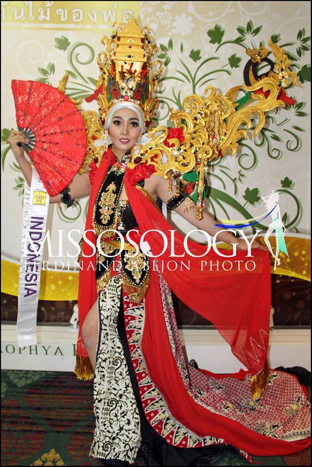 Bộ trang phục truyền thống của đất nước vạn đảo Indonesia. Ở đấu trường nhan sắc quốc tế, quốc gia này luôn gây choáng với mức độ đầu tư quốc phục khá bài bản. Trước sự “chịu chơi” như vậy, không khó để quốc gia này đem về những giải thưởng mà các nước bạn phải “thèm khát”.