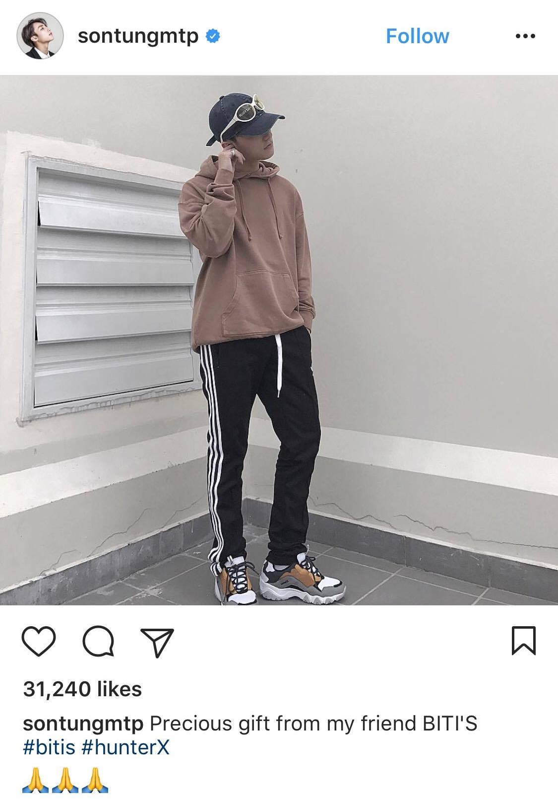 Mới đây, các tín đồ tinh ý nhận ra tài khoản Sơn Tùng đột ngột “trống vắng” khó tả. Thì ra anh chàng vừa lẳng lặng xoá sạch hình “bạn đồng hành” Hunter X khỏi Instagram. Không ngần ngại gọi Biti’s là “partner” cách đây vài hôm, có thể thấy Sơn Tùng rất phấn khích với đôi giày sinh ra chỉ để cho mình.