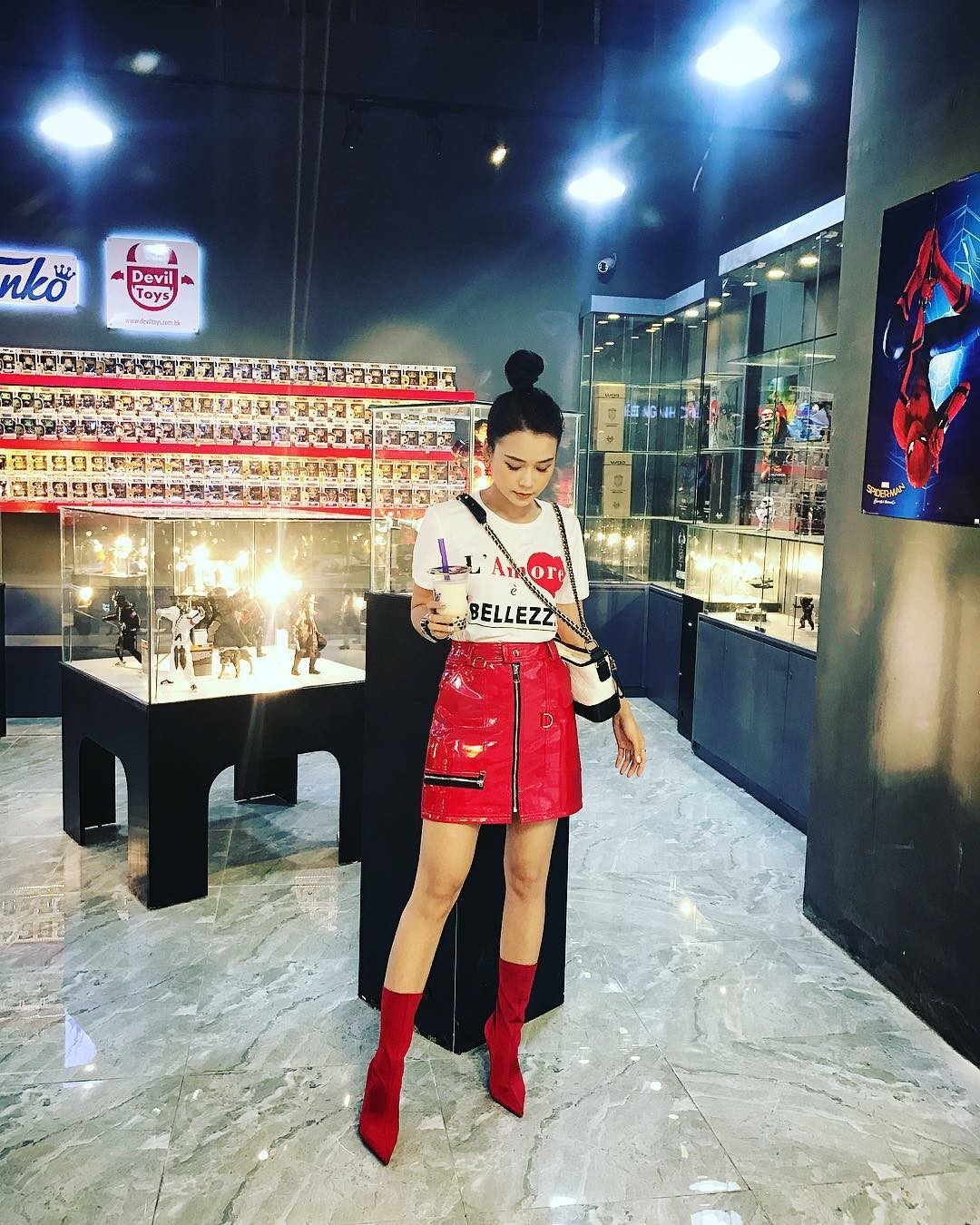 Sau những tin đồn tình cảm với Trường Giang, Pé Sam có vẻ bắt đầu chăm chút cho ngoại hình của mình hơn. Người đẹp mix and match giữa 2 màu đỏ trắng tương phản, khiến nữ diễn viên dù cá tính nhưng không kém phần dịu dàng.