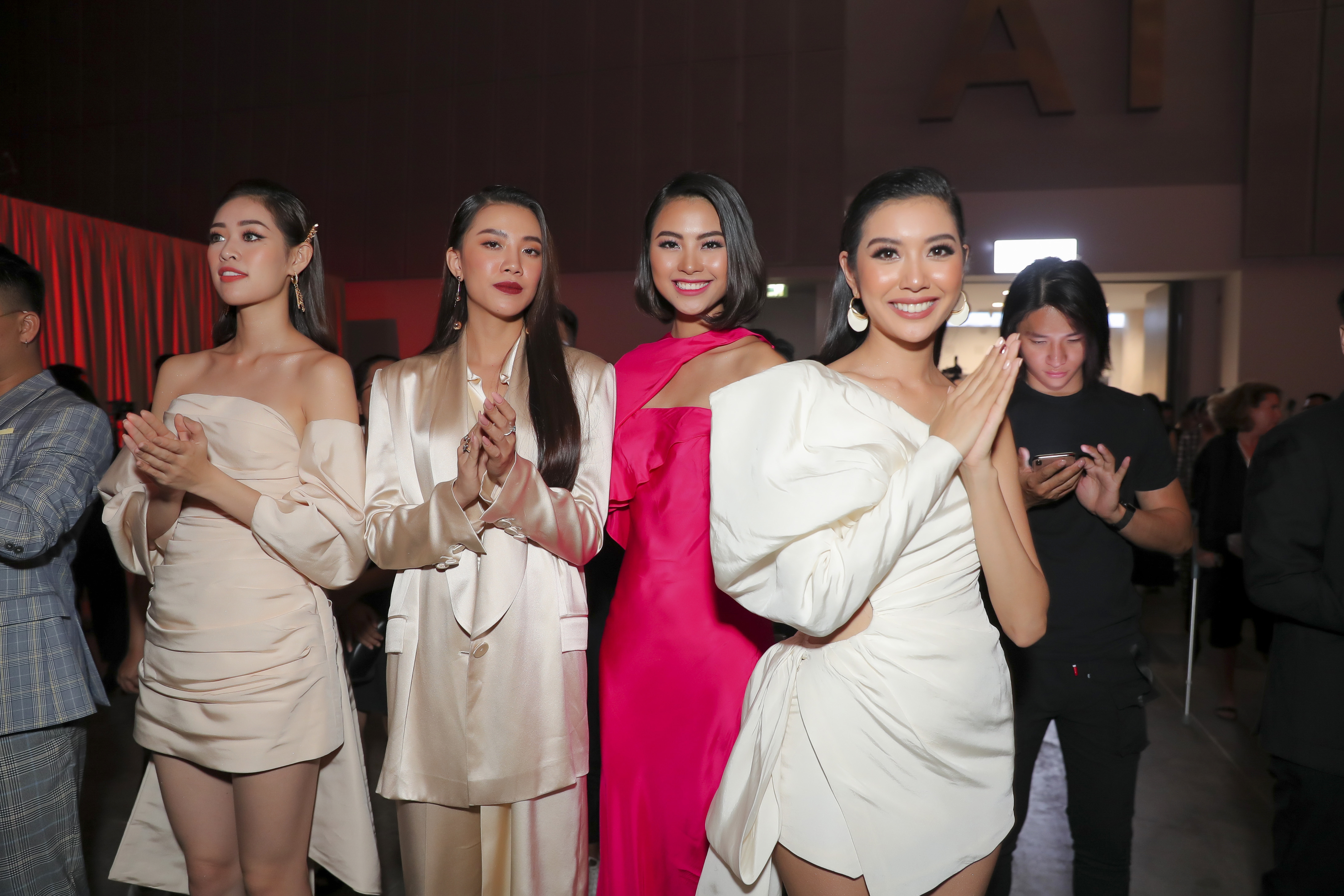 Bộ ba Hoa hậu Hoàn vũ 2019: Khánh Vân, Thúy Vân, Kim Duyên cùng diện trang phục màu trắng đồng điệu, thanh nhã.