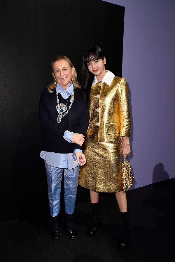 Khoảnh khắc ấn tượng khi gà nhà YG được chụp hình cùng nhà thiết kế gạo cội của thương hiệu Miuccia Prada.