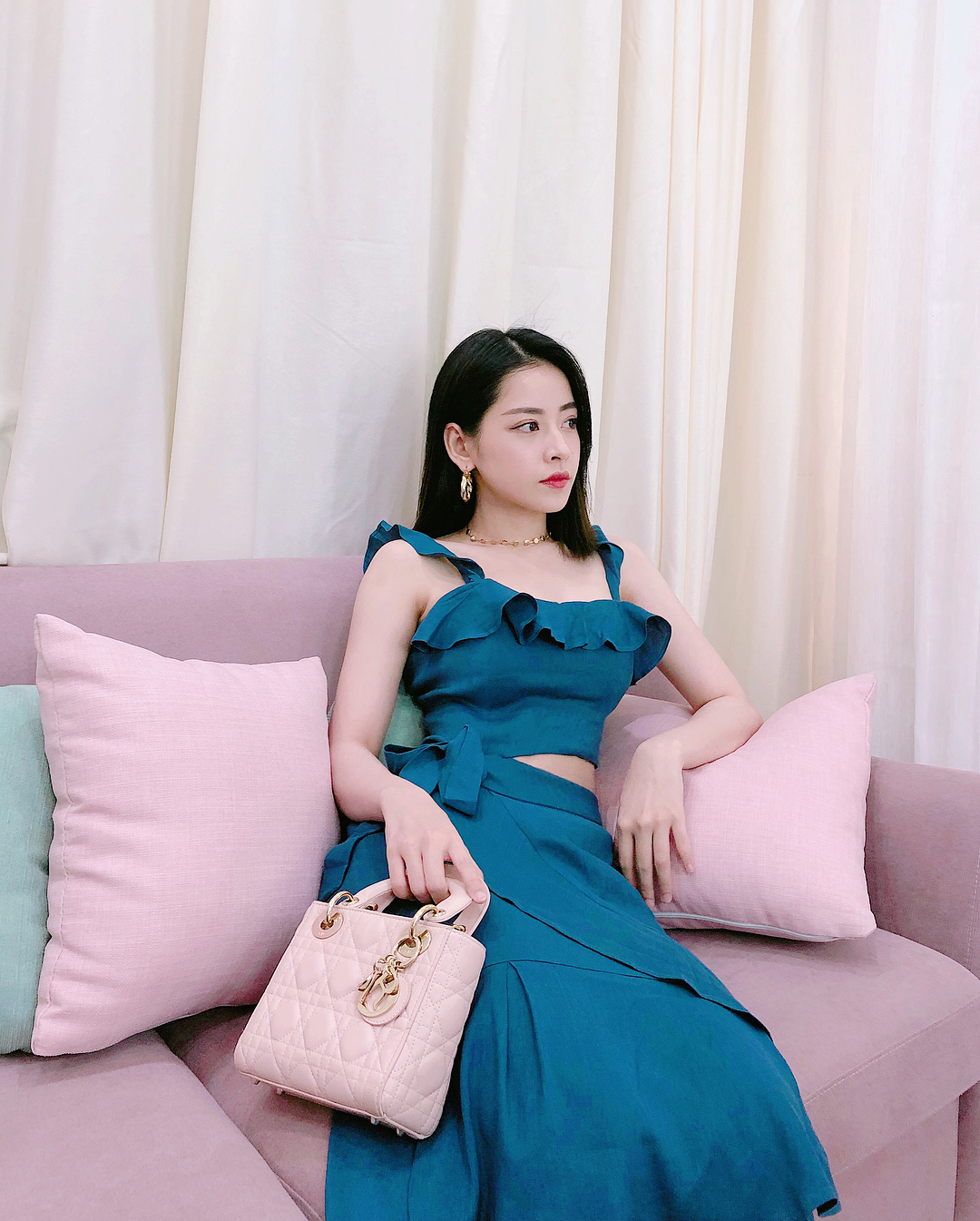 Lúc lại nhẹ nhàng, điệu đà tí chút cùng váy bèo và túi xách Dior.
