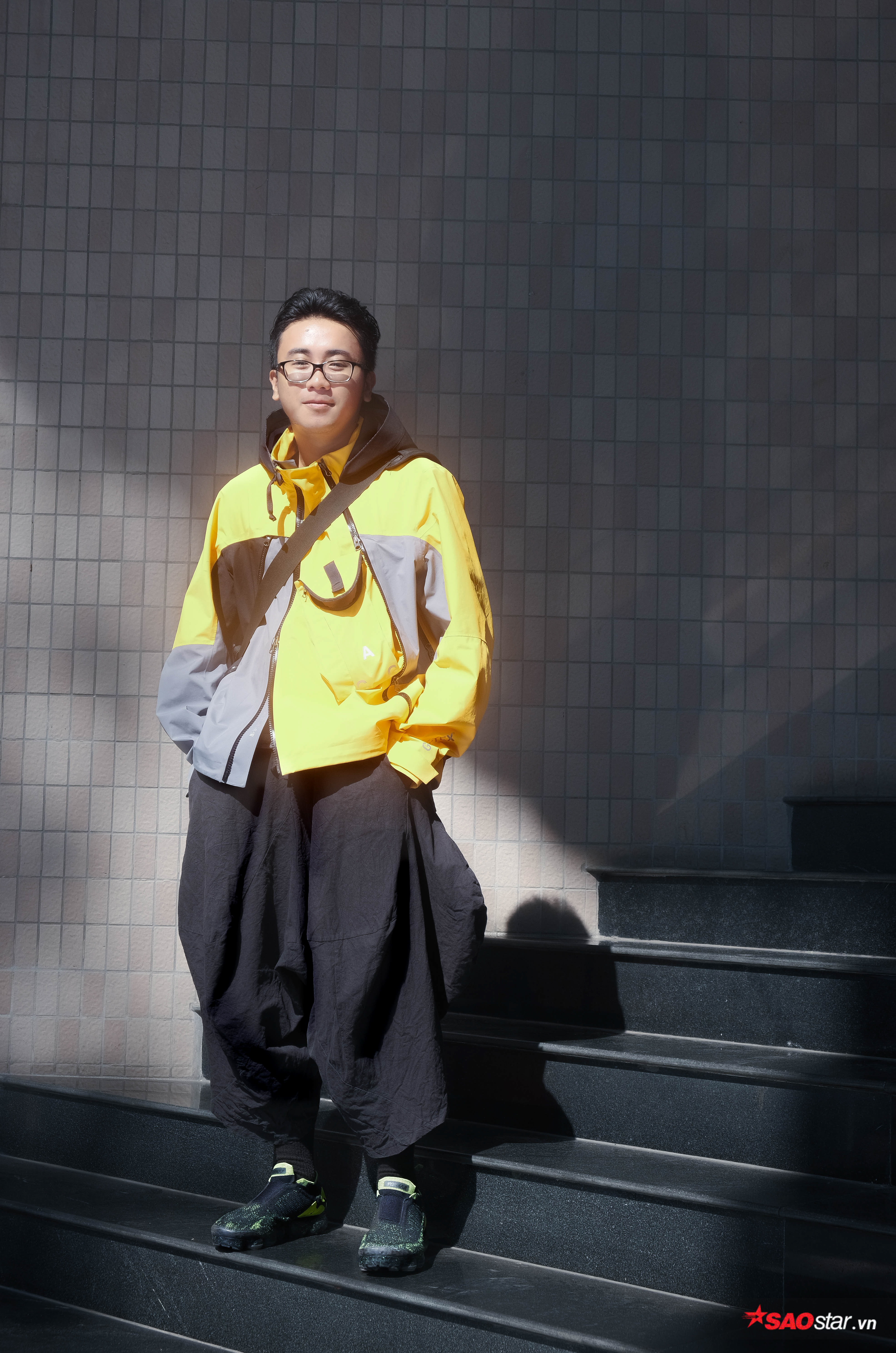 Áo khoác phom rộng mang hơi hướng Tech wear mix cùng quần 3D Japan Style là những gì mà cậu bạn này cần cho một bộ cánh nổi bật.
