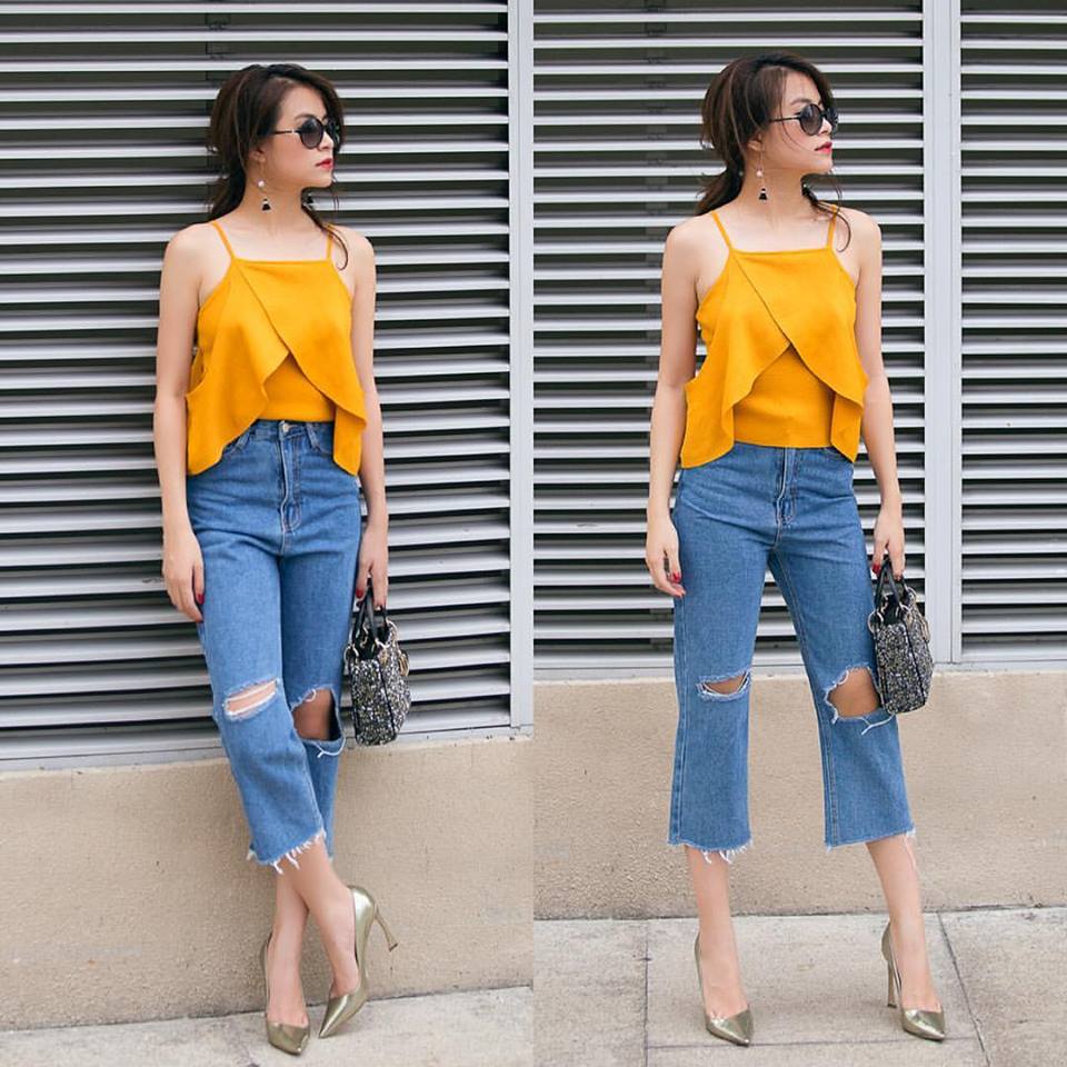 Áo dây bèo xếp mix cùng jeans lửng và giày mũi nhọn, công thức chuẩn cho cô nàng vừa thích sự nữ tính mà vẫn thật cá tính đây rồi!