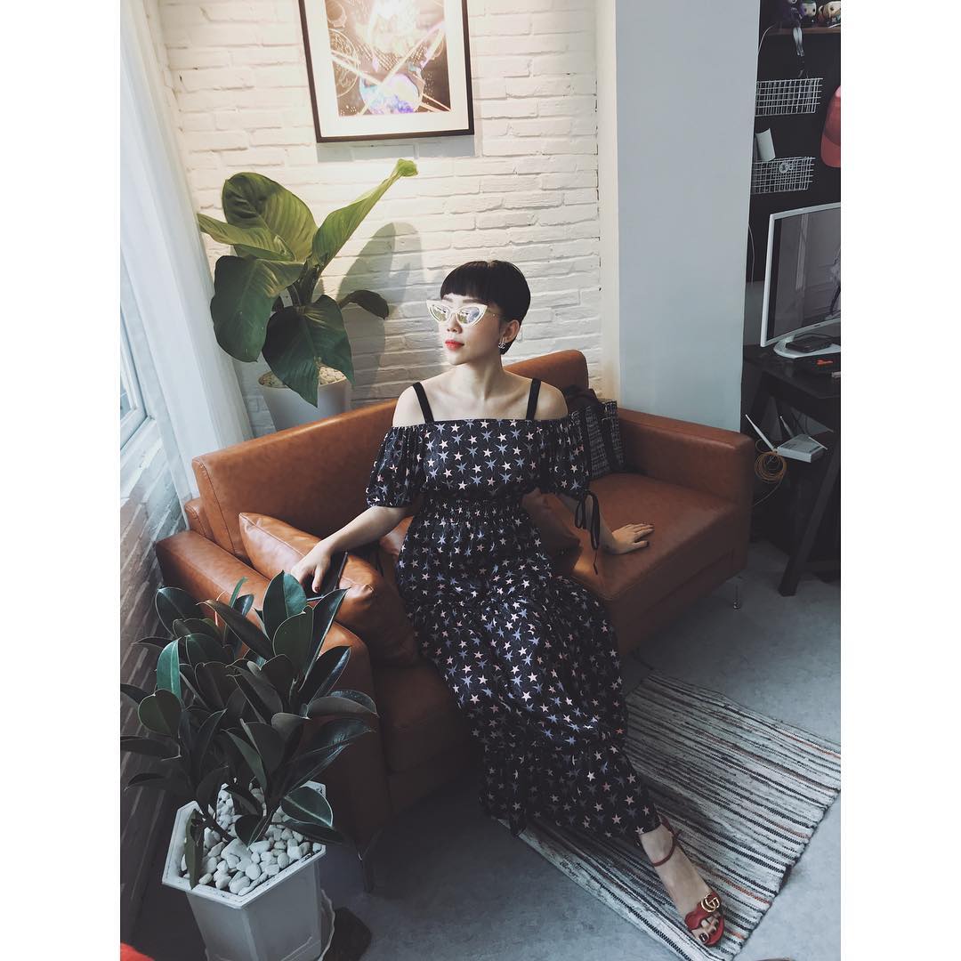 Tóc Tiên lại khiến khán giả bất ngờ với kiểu tóc ngắn mái ngang cực xu hướng. Giọng ca “Ngày mai” lựa chọn jumpsuit họa tiết ngôi sao cùng kính mắt mèo khi xuống phố trong tuần đầu năm.