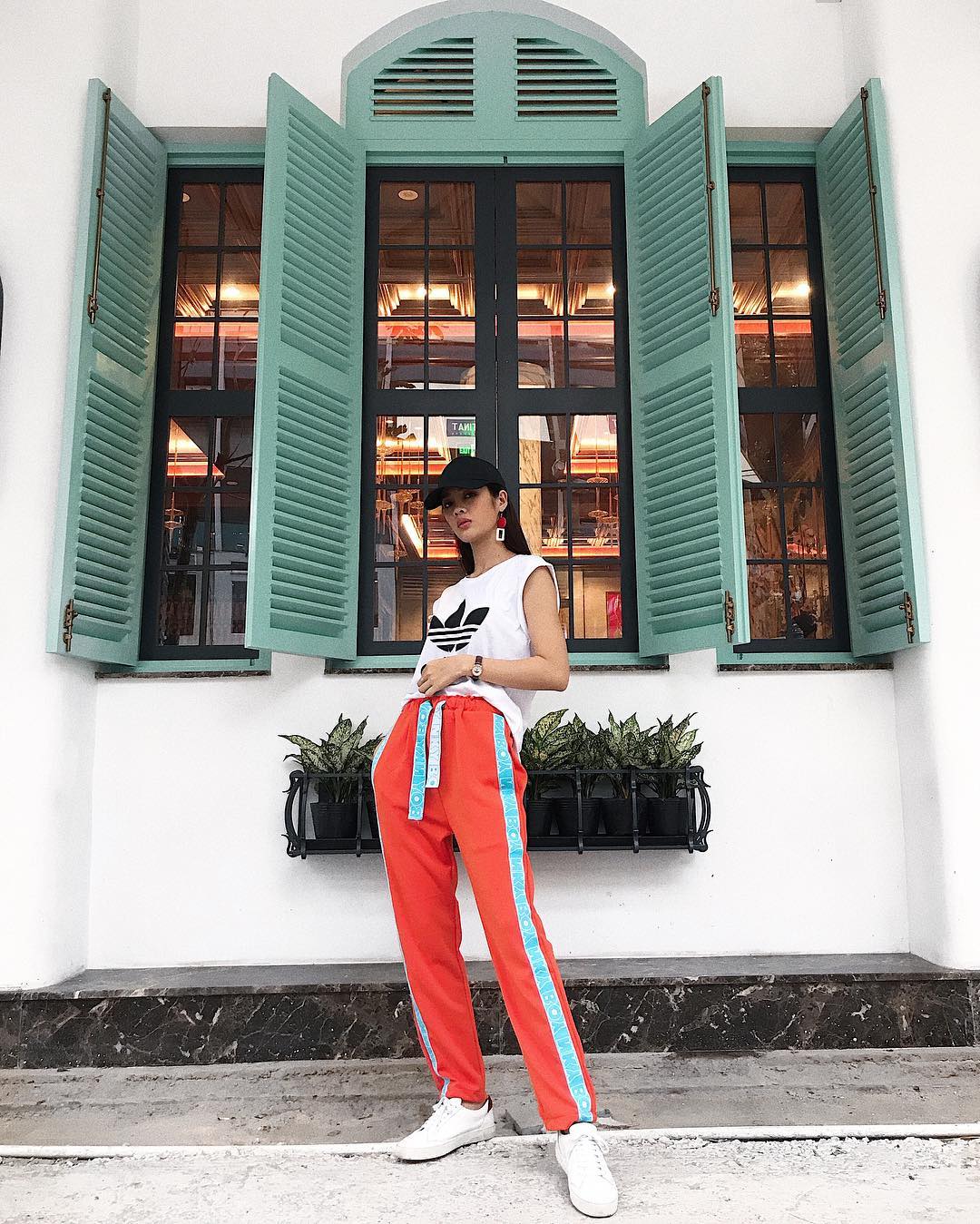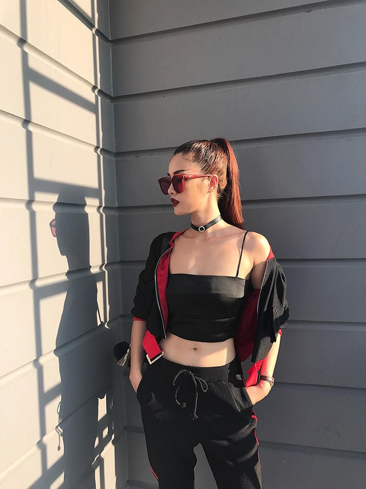Một chút sporty chic cho ngày mới thêm năng động, phóng khoáng. Sự kết hợp giữa quần sọc thể thao, croptop và bomber đúng chuẩn “chất chơi” mamg đến cho Mỹ Duyên vẻ ngoài vô cùng hiện đại.