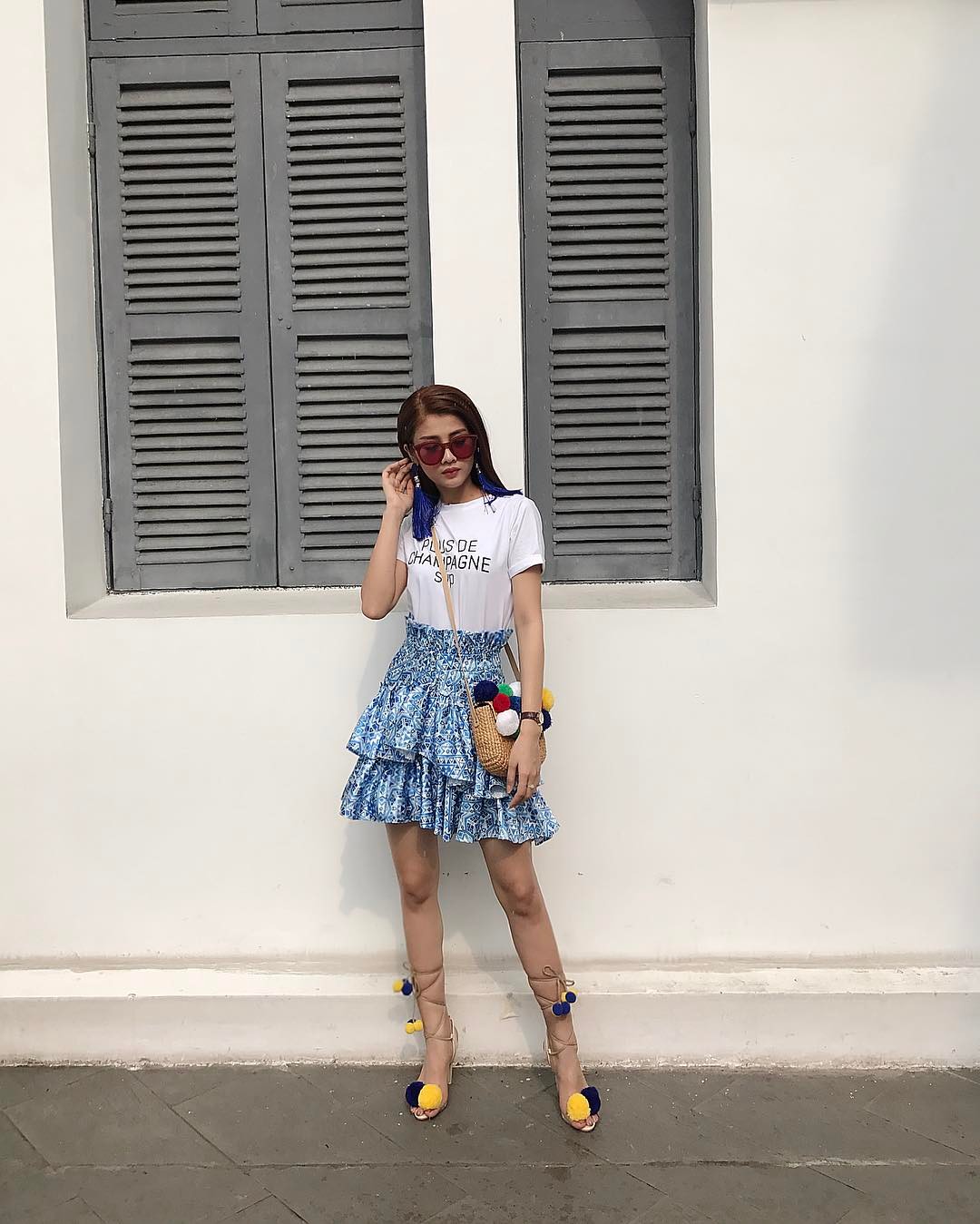 Dịu dàng, nữ tính với váy áo xinh xắn, cô nàng cũng chứng tỏ mình là “tay chơi” màu sắc nổi trội.