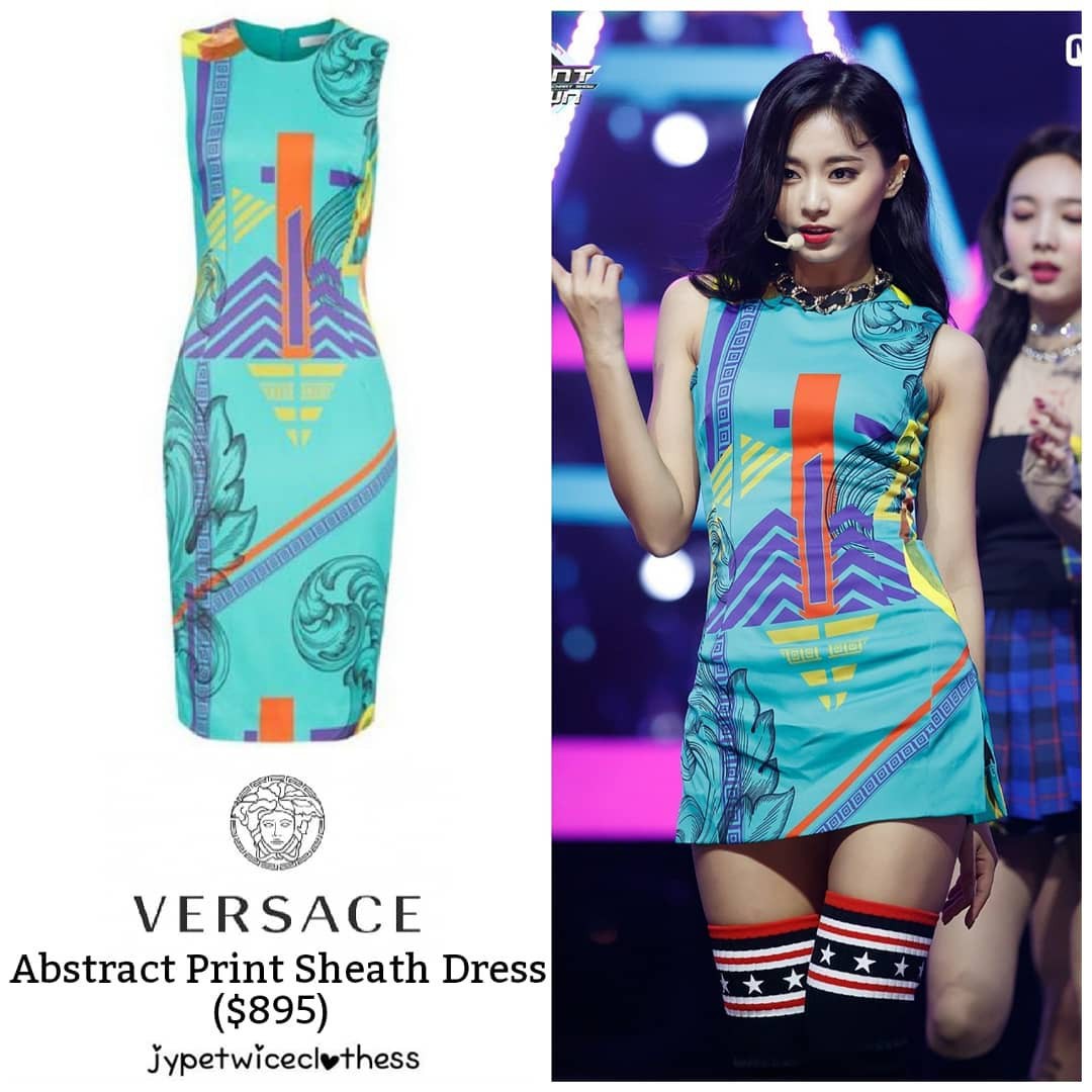Chiếc váy Versace mà Tzuyu mặc bị cắt ngắn và xẻ hai bên hông.
