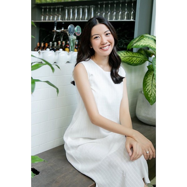 Trong bộ ảnh cưới mới nhất của mình, Á hậu Thúy Vân diện váy trắng hai dây với chất liệu linen nhẹ nhàng, thanh tao