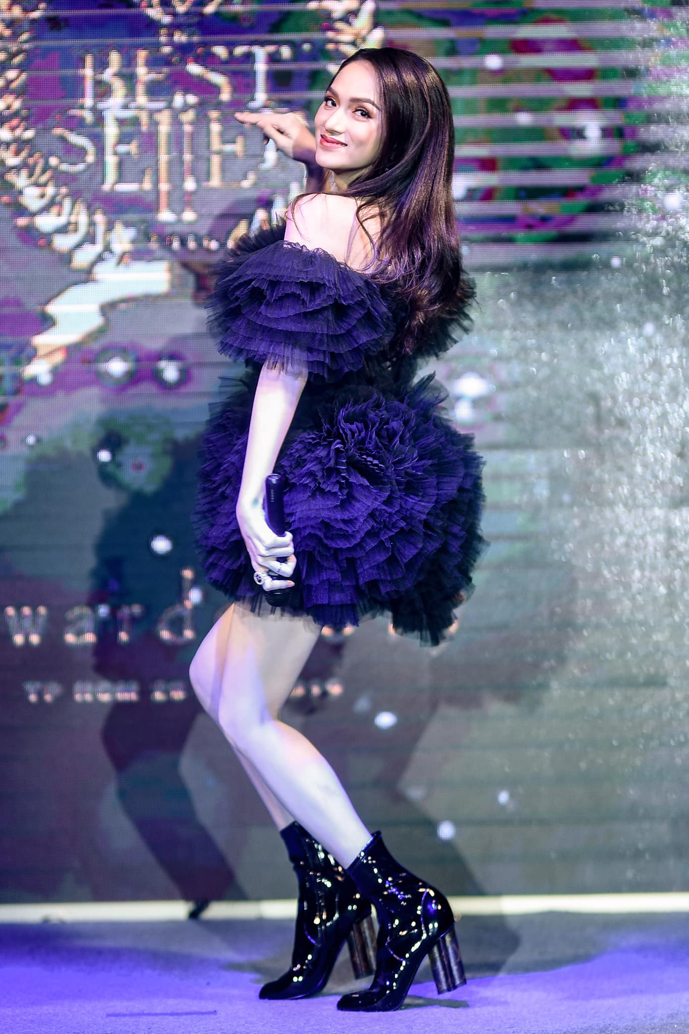 Lần khác, Hương Giang lại chọn cho mình bộ váy lấp lánh như những ánh sao trời.