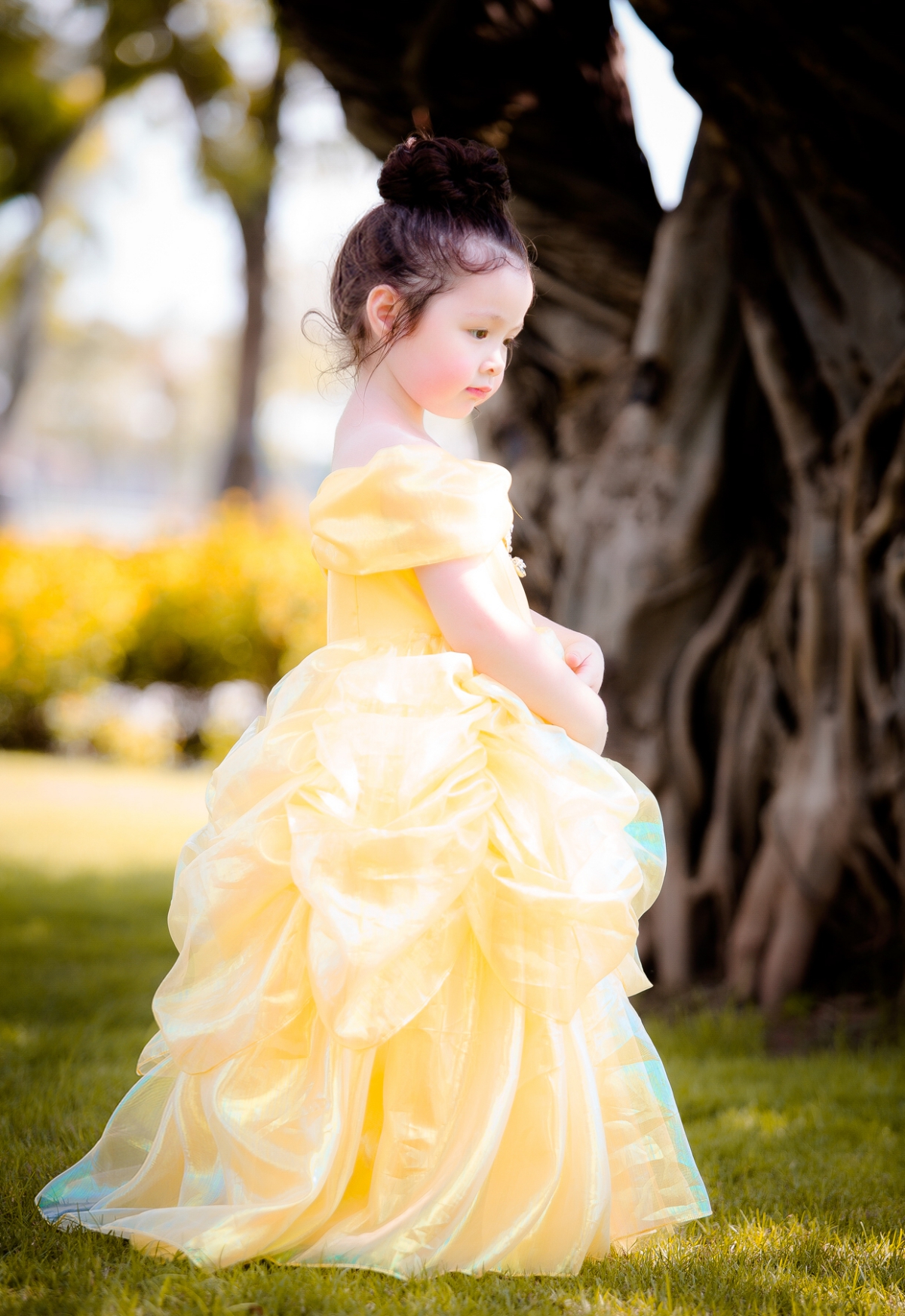 Cuối cùng nhưng không kém phần nổi bật là hình tượng nàng Bella trong câu chuyện “người đẹp ngủ trong rừng”. Không những thế, cô bé còn bất ngờ bộc lộ khả năng diễn xuất, với ánh mắt dịu dàng, cùng bộ đầm vàng nữ tính, xếp phồng cầu kì. Cadie không hề thua kém bất cứ nữ minh tinh nào khi sắm vai nhân vật nổi tiếng này.
