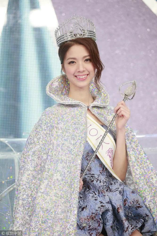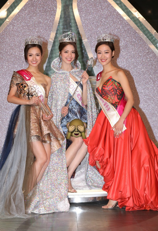 Hoa hậu Hong Kong 2017 Juliette Louie lên sân khấu trao vương miện cho người kế nhiệm. Năm ngoái, khi đăng quang, cô không nhận được nhiều lời khen ngợi vì ngoại hình, đặc biệt là hàm răng hơi hô.