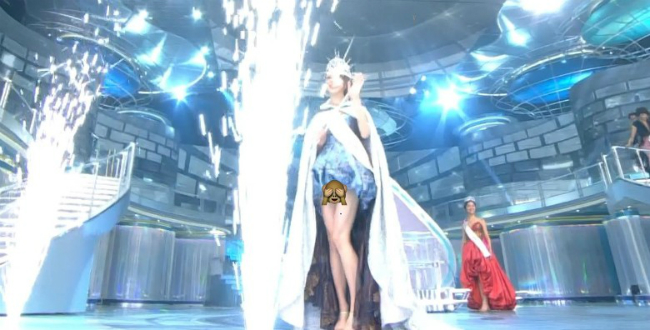 Tuy nhiên giây phút đăng quang của tân Hoa hậu đã trở thành đề tài bàn tán của cư dân mạng khi người đẹp để lộ nội y ngay trên sân khấu và lọt vào ống kính truyền hình.