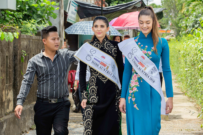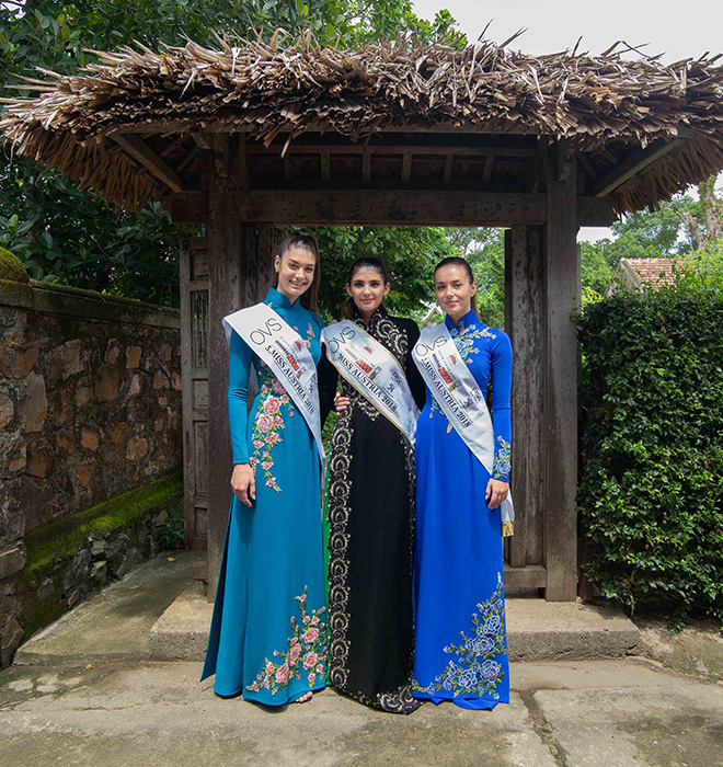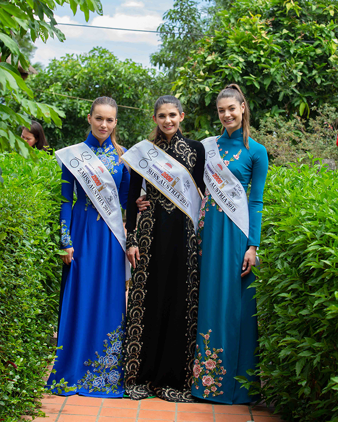 Tân Hoa hậu Áo 2018 Daniela Zivkov chia sẻ với phóng viên: “Tôi vô cùng hạnh phúc khi được mặc áo dài Việt Nam. Từng được thấy qua sách báo, hôm nay tôi và 2 á hậu mới được tận tay chạm vào thiết kế xinh đẹp này.