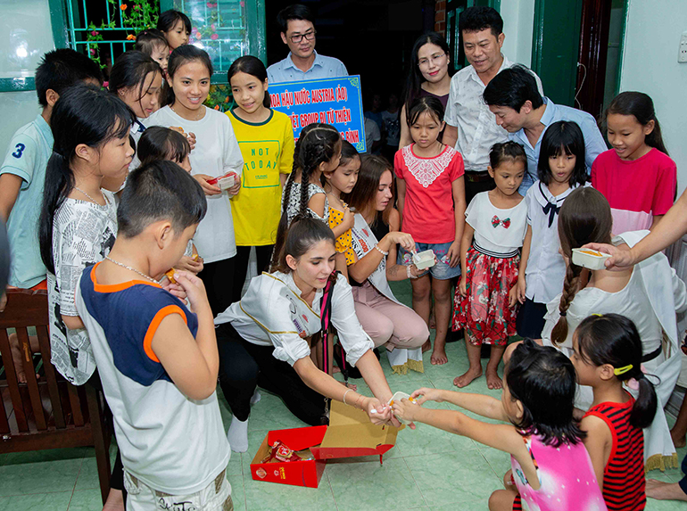 Top 3 Hoa hậu Áo trong vòng vây của các bé ở Làng trẻ SOS tỉnh Quảng Bình