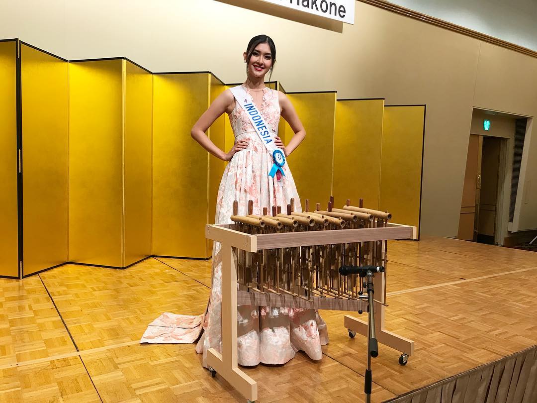 Tân hoa hậu Miss International 2017 chọn trang phục phù hợp với phần thi tài năng của cô.