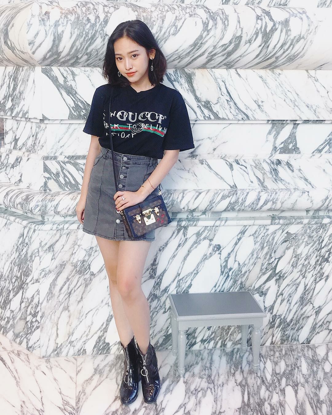 Cô gái “thị phi” Thúy Vy bắt đầu có những sự tiến triển hơn trong gout thời trang của mình. Với những gam màu trung tính như đen xám giúp Thúy Vy khoe khéo léo làn da trắng sứ của mình.
