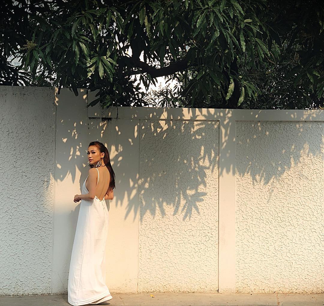 Sĩ Thanh với chiếc váy maxi all white đang khoe làn da rám nắng sexy của mình dưới ánh nắng nhiệt đới tại Thái Lan xa xôi.