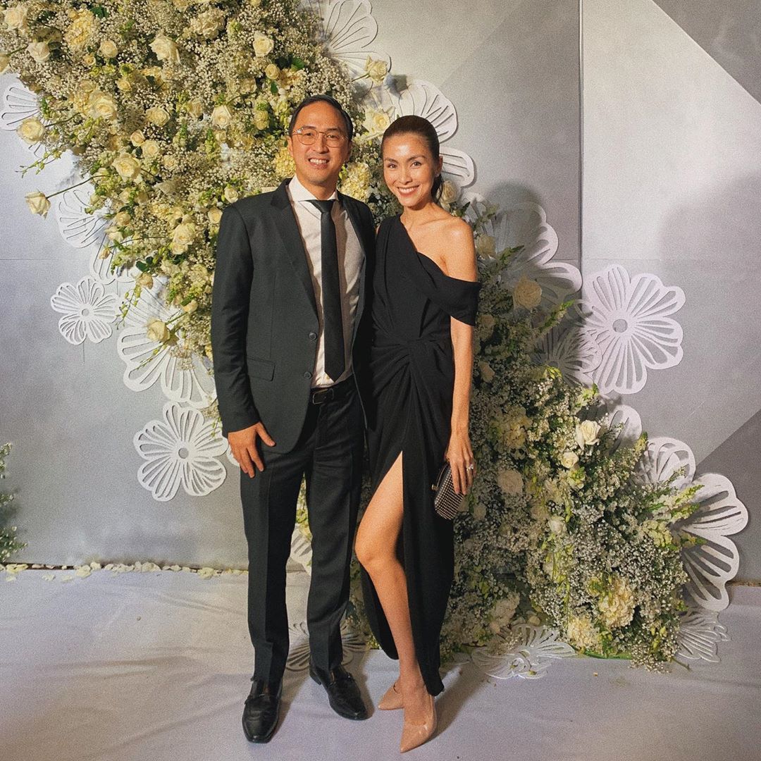 Trong khi ông xã Louis Nguyễn lịch lãm trong bộ suit đen thì Tăng Thanh Hà diện chiếc váy lệch vai, xẻ tà cao, cô nàng khiến người hâm mộ phải dành lời khen khi không chỉ khéo léo khoe vóc dáng quyến rũ và đôi chân dài mà còn cho thấy nhan sắc xinh đẹp, sang trọng của mình.