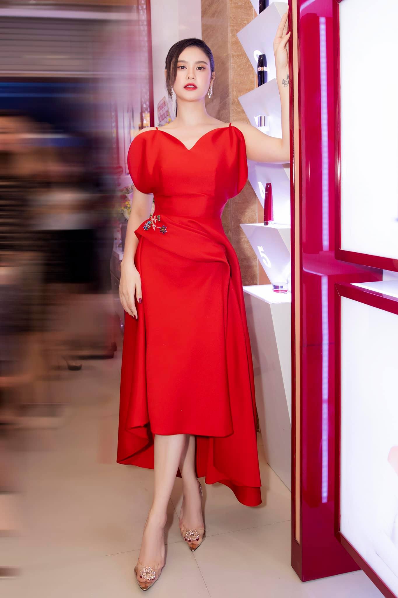 Hoá thân thành đoá hồng nhung đỏ rực, Đỗ Mỹ Linh ngay lập tức thu hút bao ánh nhìn khi xuất hiện trong một sự kiện tuần qua.