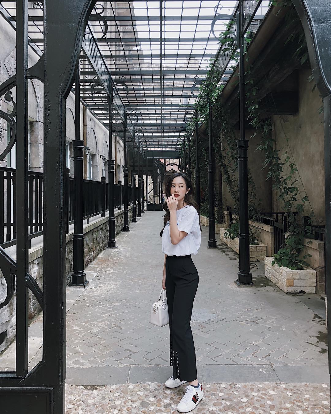 Set đồ năng động với những item mang tông màu cơ bản là cách Đồng Ánh Quỳnh trở nên nổi bật khi xuống phố.