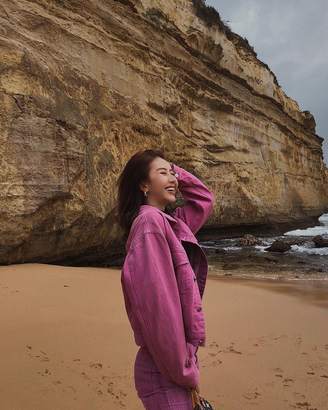 Quỳnh Anh Shyn cũng sử dụng lại “chiêu thức” mix đồ layer với áo khoác phom rộng. Tuy nhiên, cô nàng lại vô cùng tinh tế khi đi tất cả theo gam màu hồng nổi bật, tạo sự thú vị, hút mắt.