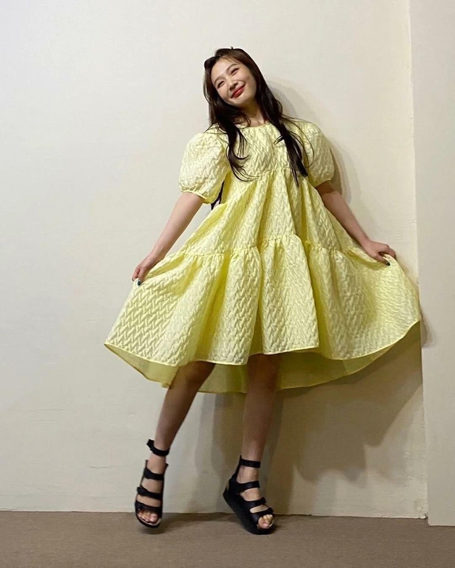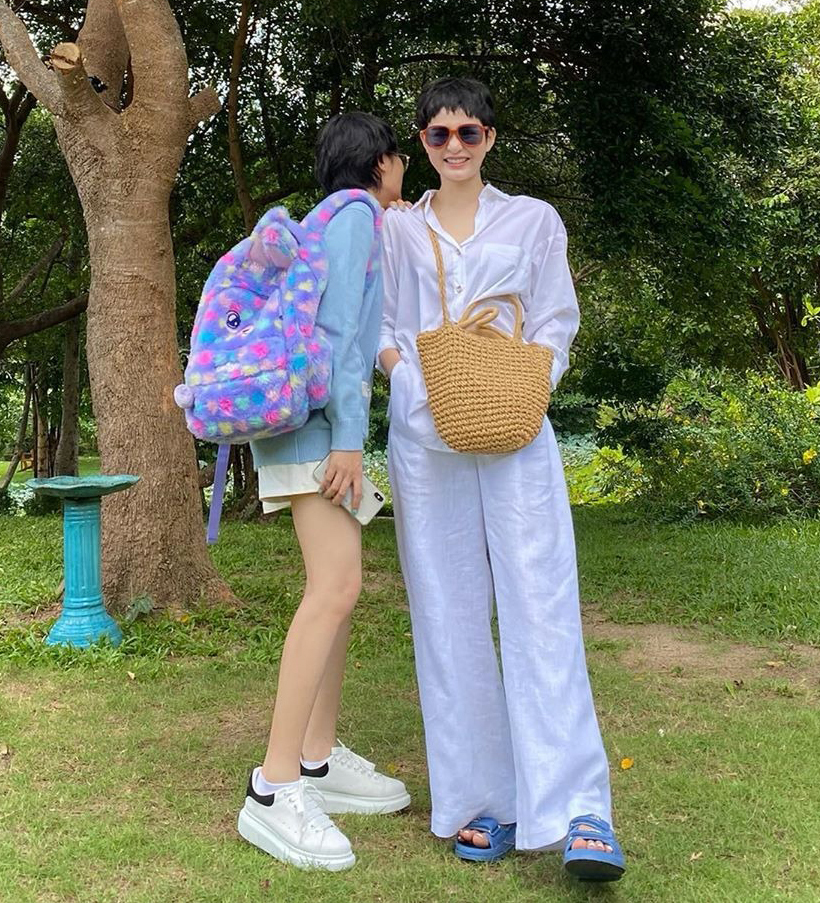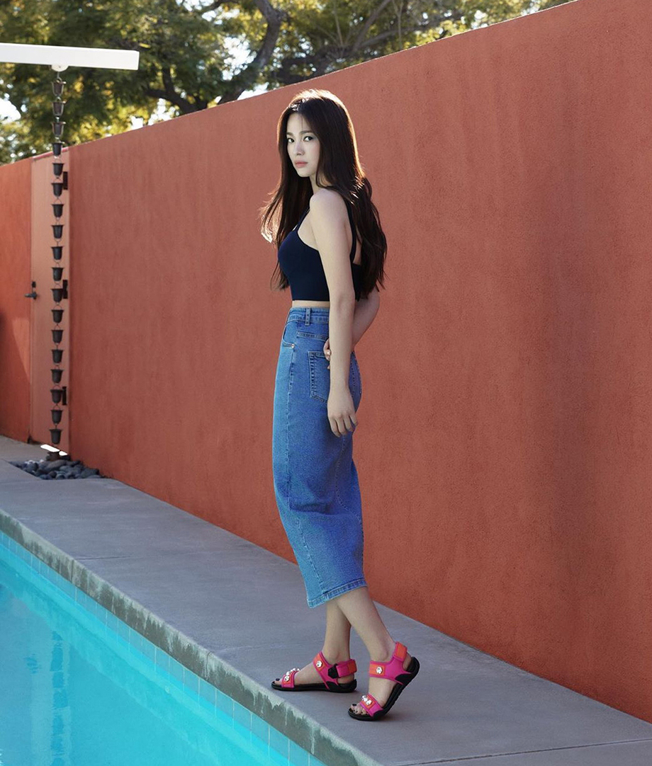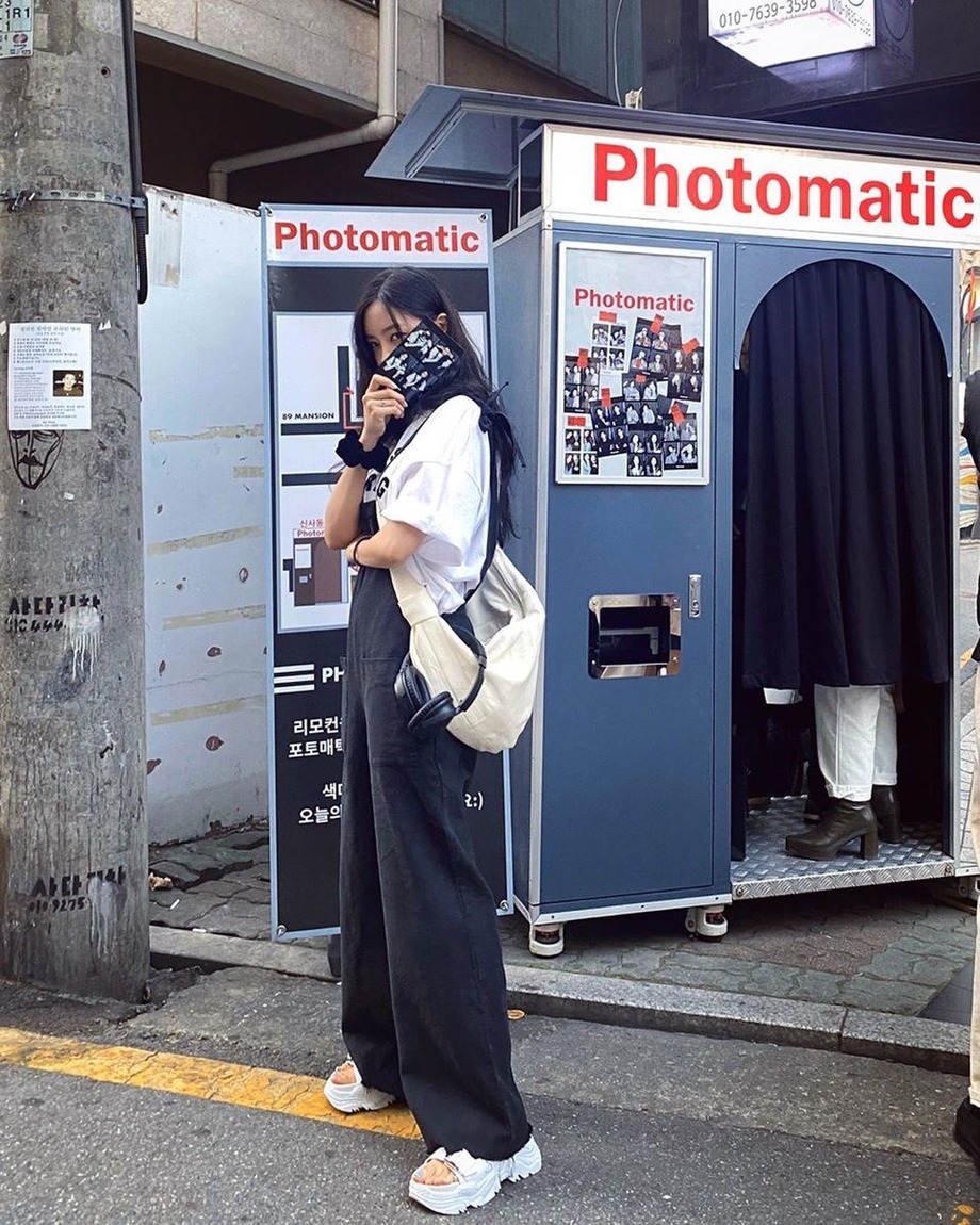 Hyo Min mix cùng quần ống suông và áo phông phom rộng. Rõ ràng tưởng khó mặc, nhưng kiểu giày này hoàn toàn dễ để mix match theo muôn vàn phong cách.