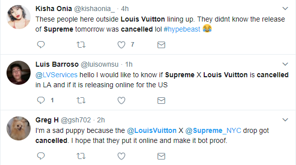Sáng ra, “quả bom” triệu đô Louis Vuitton x Supreme đã giáng vào các tay săn một đòn chí mạng bằng lời nhắn gửi: “Chúng tôi không sản xuất nữa, các địa điểm bạn khoanh vùng pop-up cũng dẹp rồi, xin lỗi nhé!”