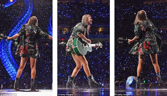 Hiện tại, Taylor Swift đang trong tour lưu diễn “Reputation”. Tuy nhiên, mới đây cô nàng đã không may mắn gặp phải 1 cơn mưa kéo dài khi biểu diễn tại bang New Jersey (Mỹ).