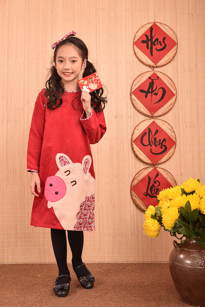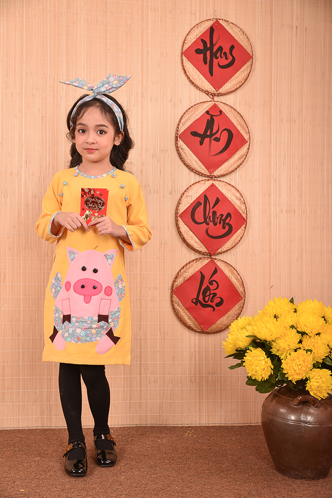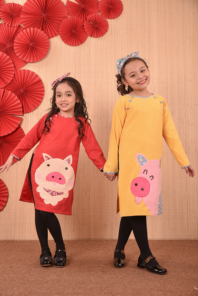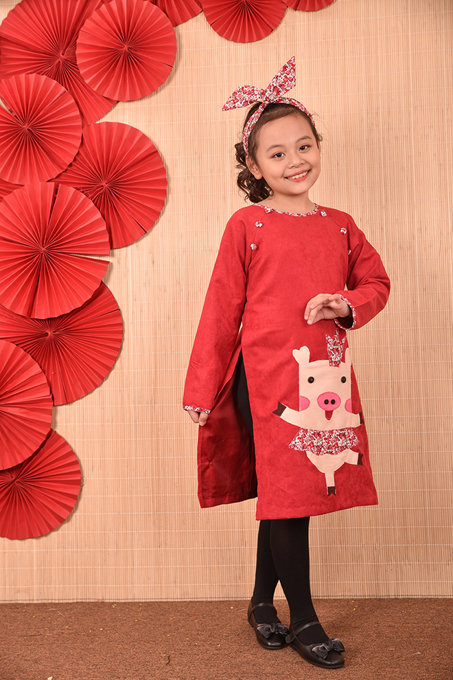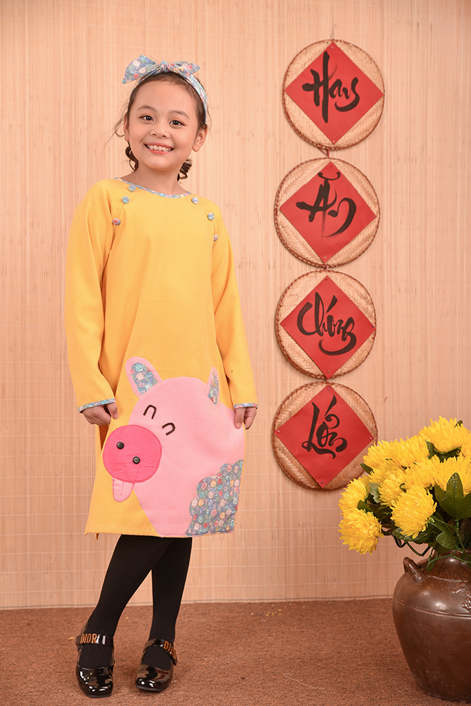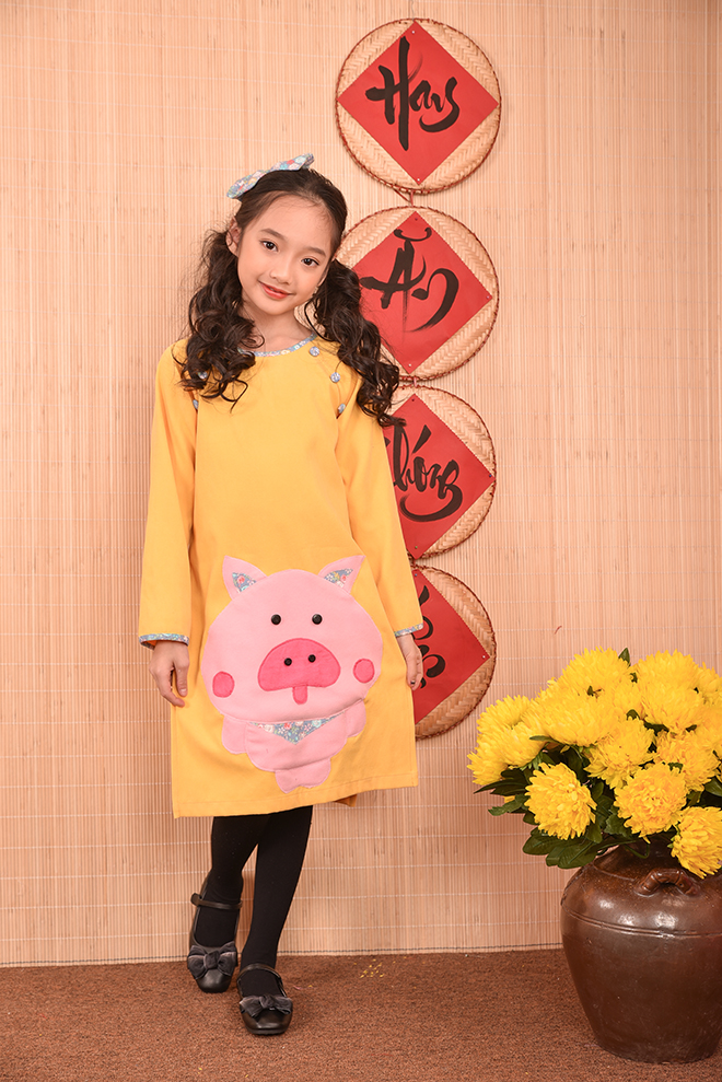 Nếu như mọi năm các bố mẹ đã quá quen thuộc với các chất liệu cũng như kiểu dáng áo dài thông dụng từ lụa, tơ, gấm , voan … với các họa tiết thêu hoa, đính kết chim bướm, hay vẽ hoặc in họa tiết lên áo dài… thì năm nay lựa chọn áo dài họa tiết chú ủn ỉn sẽ là một lựa chọn thực sự mới mẻ , độc đáo , đặc biệt còn rất ngộ nghĩnh và phù hợp với trẻ em.