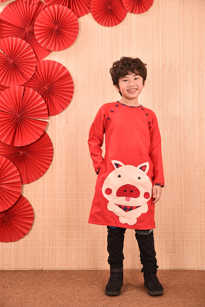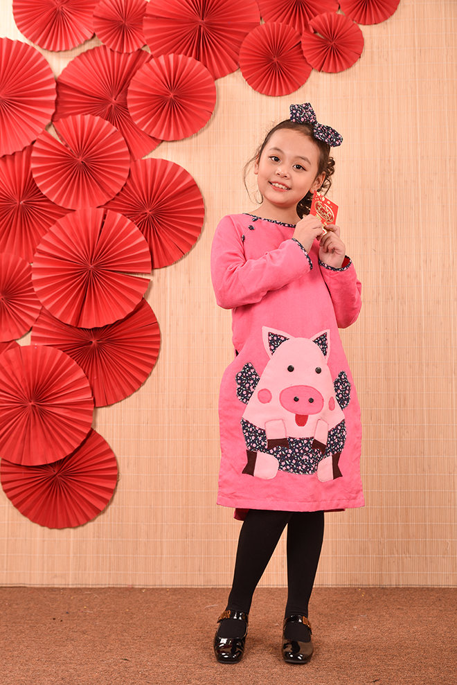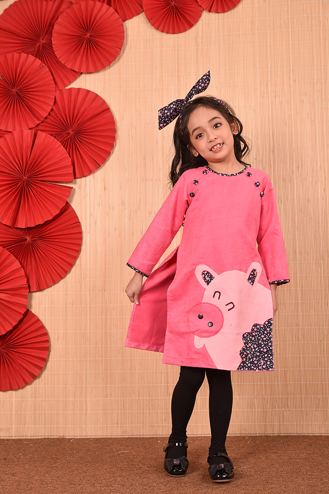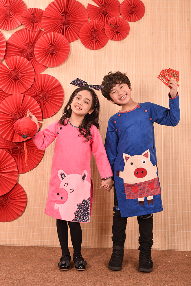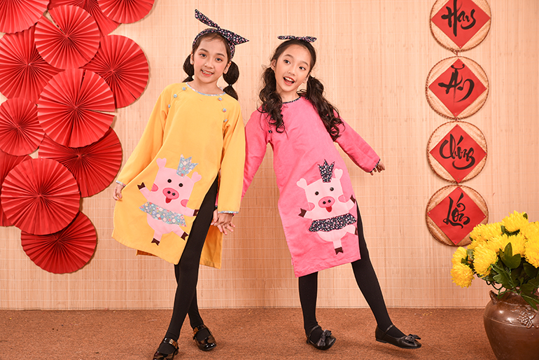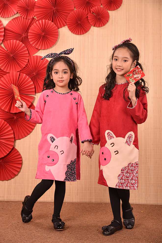 Nếu như mọi năm các bố mẹ đã quá quen thuộc với các chất liệu cũng như kiểu dáng áo dài thông dụng từ lụa, tơ, gấm , voan … với các họa tiết thêu hoa, đính kết chim bướm, hay vẽ hoặc in họa tiết lên áo dài… thì năm nay lựa chọn áo dài họa tiết chú ủn ỉn sẽ là một lựa chọn thực sự mới mẻ , độc đáo , đặc biệt còn rất ngộ nghĩnh và phù hợp với trẻ em.