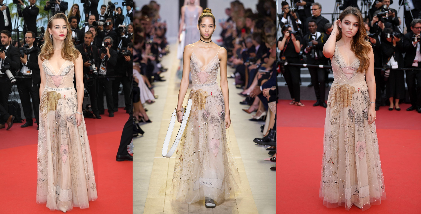 Không có gì khó hiểu khi nhà mốt danh giá Dior lại vươn lên vị trí hàng đầu của các ngôi sao quốc tế. Đẳng cấp - tinh tế - sang trọng, những thiết kế của Dior hội tụ đủ những yếu tố này và phù hợp với phong cách thảm đỏ. Những chiếc đầm hai dây đặc trưng Dior lần lượt xuất hiện tại Cannes, thậm chí đã có hai ngôi sao cùng diện một bộ đầm giống nhau tạo nên màn “đụng hàng” khó quên trong lịch sử thảm đỏ.