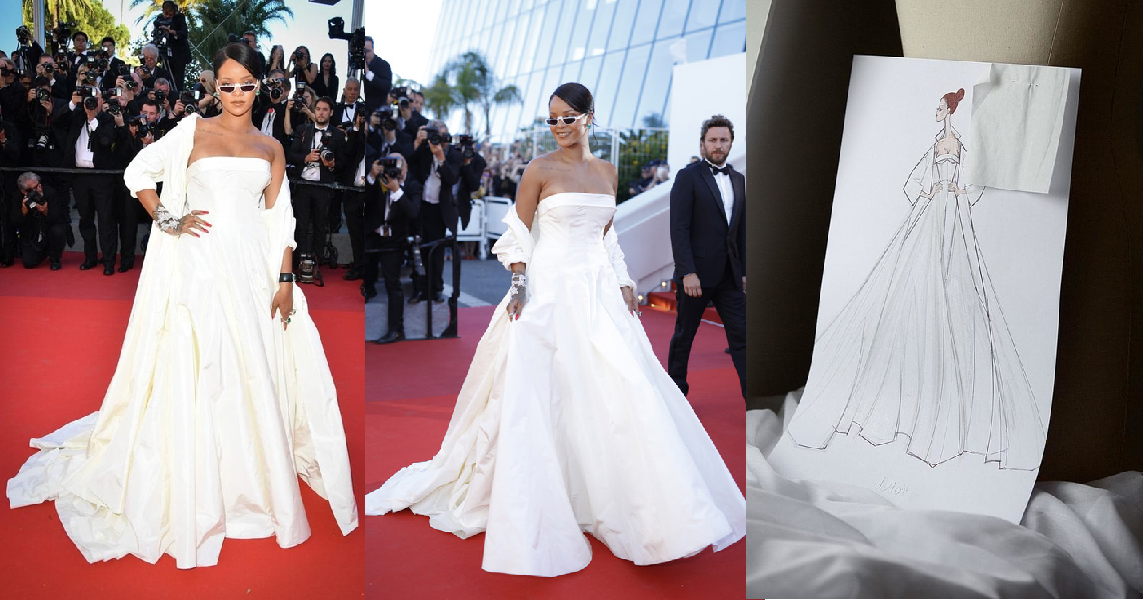 Rihanna thực sự là ngôi sao quyền lực của làng thời trang. Dior đã thiết kế hẳn bộ đầm trắng dành riêng cho nữ ca sĩ. Tuy mẫu váy rất nữ tính nhưng Riri có lẽ không chịu bao giờ hóa “bánh bèo”, cô nàng mix cùng vòng tay cá tính và đeo kính râm khiến tổng thể trang phục vừa mềm mại dịu dàng lại cá tính một cách rất riêng.