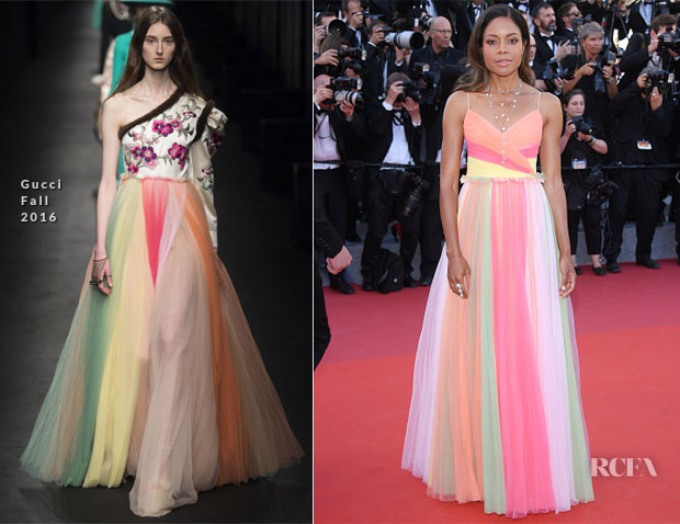 Naomei Harris lộng lẫy trong mẫu đầm voan sắc màu - thiết kế nằm trong bộ sưu tập Thu Đông 2016.