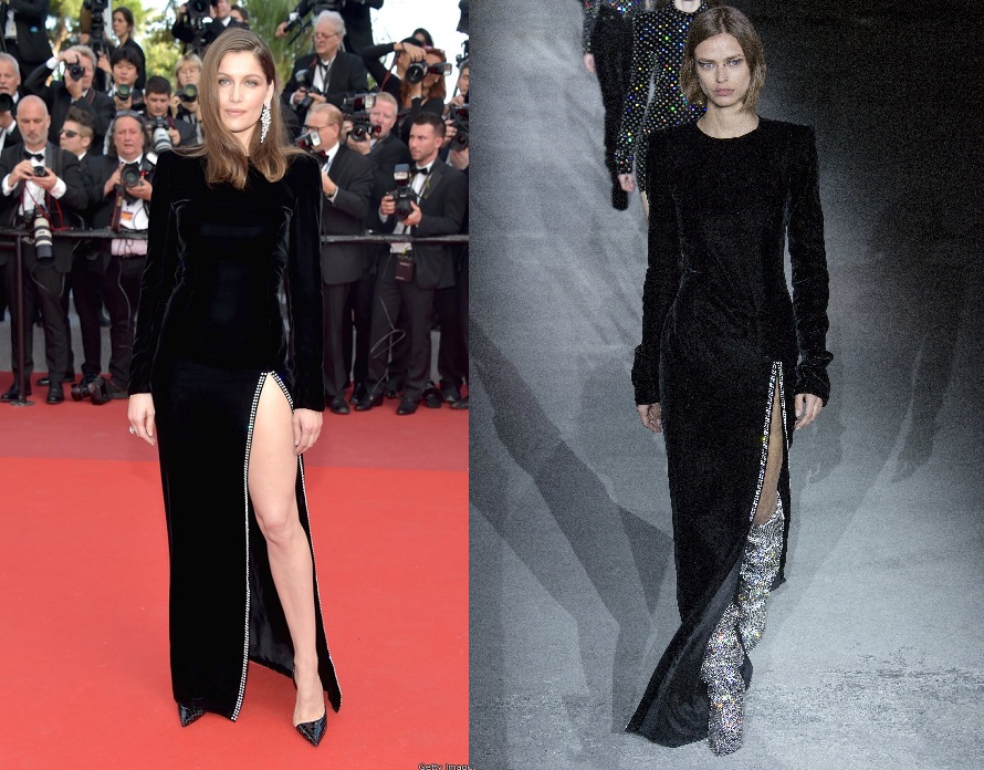 Một trong những đối thủ mạnh của Dior trong thảm đỏ Cannes năm nay chính thương hiệu Saint Laurent. Nhà mốt “lão làng” 56 năm của đất nước Pháp đã thổi bùng với nhiều mẫu đầm nhung đầy quyền quý và cả những bộ kim sa lấp lánh trang trọng. Không màu mè, rực rỡ bằng những sắc thái nóng bỏng khác nhưng cuộc dạo chơi của Saint Laurent tại Cannes lại trở nên đầy tính đẳng cấp với gam màu đen huyền thoại.
