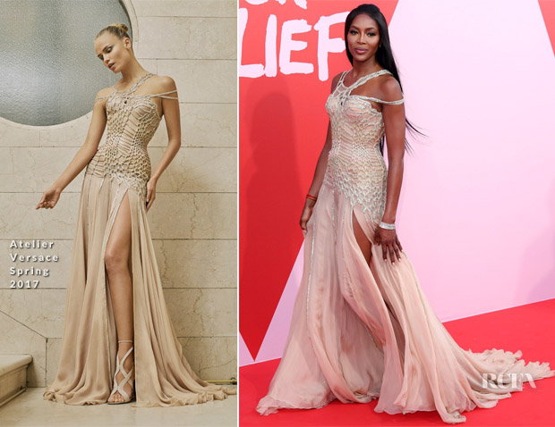 Nhà mốt đã làm nên đế chế từ những năm của thập niên 80 - Versace vẫn tiếp tục duy trì đẳng cấp trong những bộ cánh mềm mại, thanh thoát. Tại Cannes 2017, các sao lớn đồng loạt diện thiết kế của Versace như siêu mẫu Naomi Campbell, nữ diễn viên Nicole Kidman, người mẫu Natalia Vodianova…