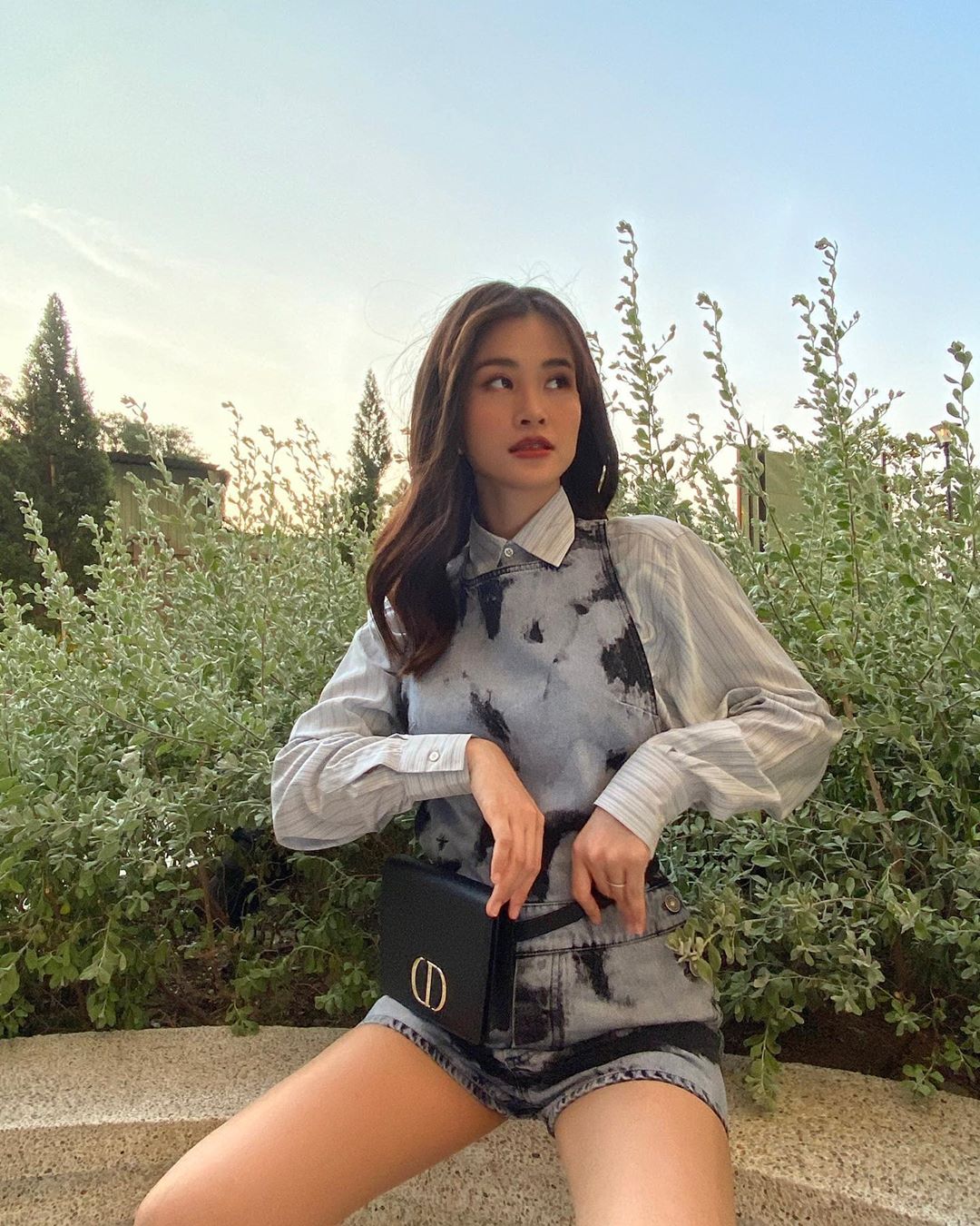 Các kiểu áo yếm, quần cạp cao che bụng cũng được Đông Nhi chọn diện vào những tháng đầu thai kì.