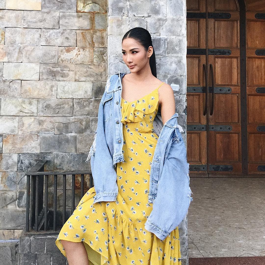 Sự nhẹ nhàng pha chút nét trẻ trung, chính là điều mọi người có thể cảm nhận với combo váy hoa cùng áo khoác jeans của Hoàng Thùy.