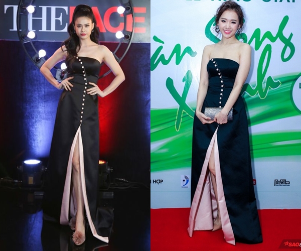 Hari Won vô tình đụng hàng với Trương Quỳnh Anh khi diện mẫu đầm cup ngực gam đen cùng đường xẻ tà. Đây chính là một trong những pha đụng hàng không thể phân biệt ai sẽ xinh đẹp hơn ai.