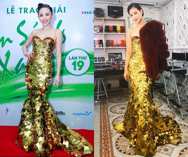 Tại một diễn biến khác, cô nàng lại tiếp tục diện chung một bộ cánh với Hoa hậu Kỳ Duyên. Tuy nhiên nhiều khán giả nhận xét, An Nguy không phù hợp với những mẫu đầm phom dáng ôm sát cơ thể như thế này!