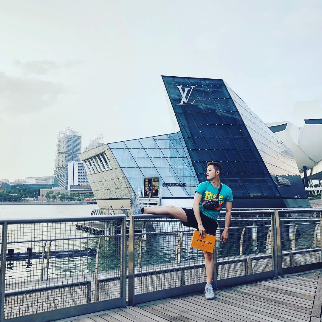 Anh tự tin tạo dáng và luôn dành vị trí nhất định cho chiếc túi trước ống kính.