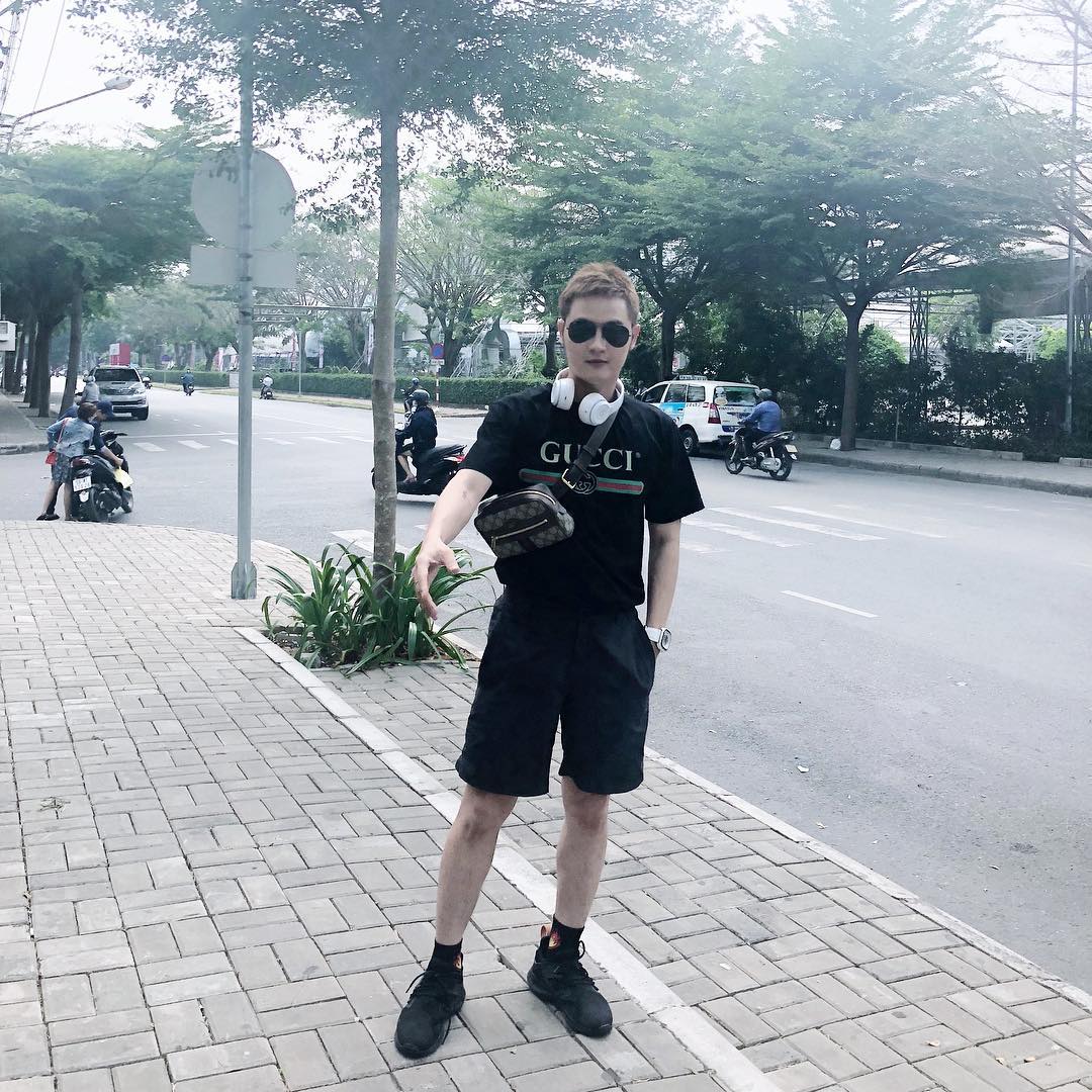 Có khi chiếc túi là điểm nhấn nổi bật hơn cả trên tổng thể trang phục đơn sắc của anh. Ngoài chiếc túi, áo thun Gucci trên dưới chục triệu cũng tạo nên “chất chơi” hơn cho set đồ.