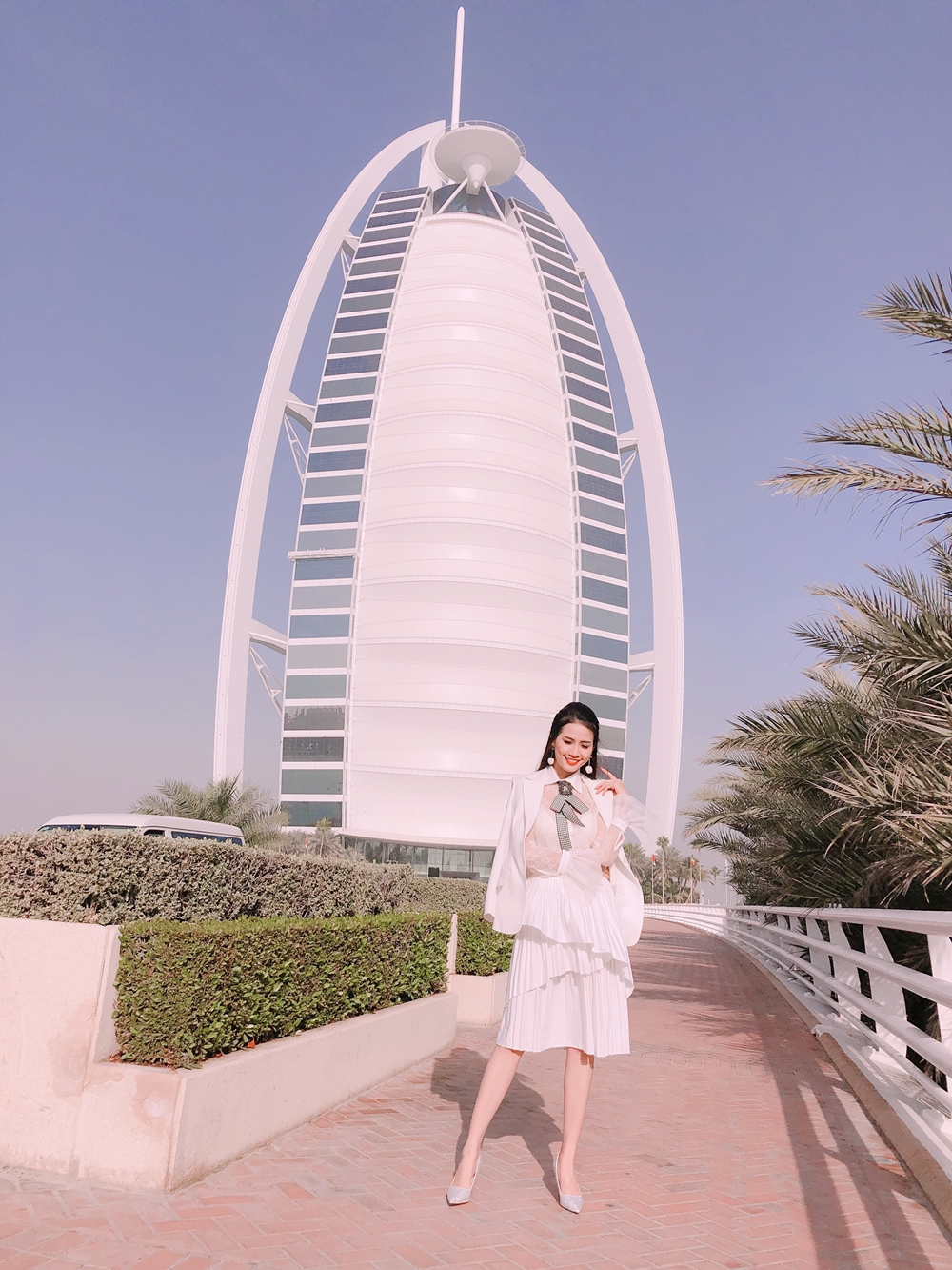 Trong chuyến du lịch Dubai, Phan Thị Mơ diện cả cây trang phục tông trắng tạo nên sự nhẹ nhàng cho người đẹp. Cách kết hợp khéo léo khiến tổng thể không bị quá “bánh bèo”, quê kiểng mà lại trở nên sang trọng, nữ tính.