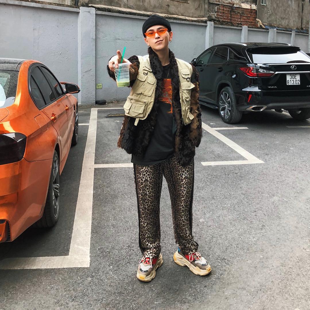 Decao lại vô cùng chất, ngầu với outfit phối layer này. Cái hay của anh chàng fashionisto là sử dụng các items nhiều họa tiết nhưng phối lại với nhau cực kì thông minh, không hề gây rối mắt.