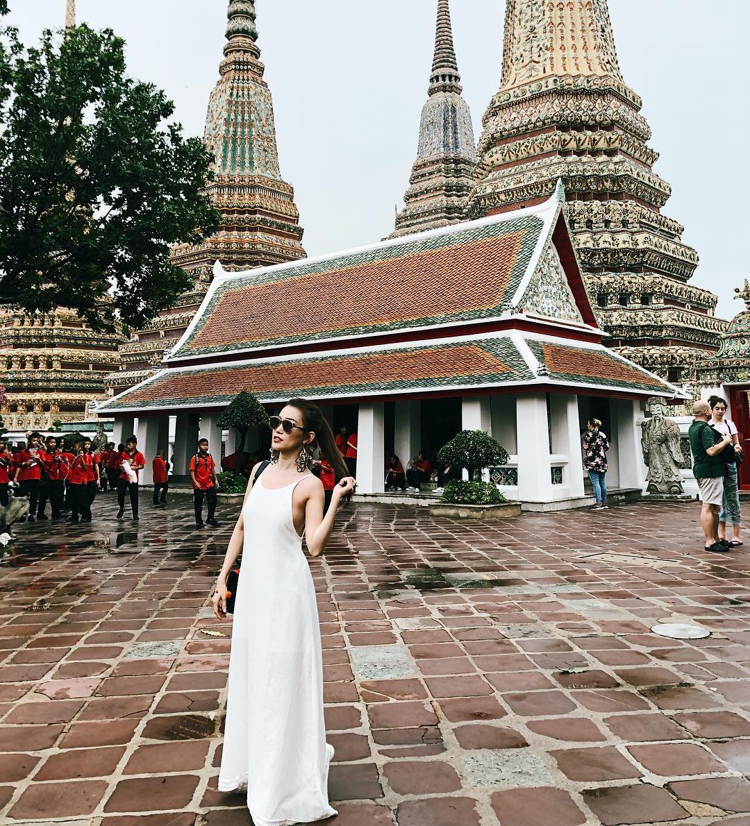 Sỹ Thanh lựa chọn 1 chiếc váy dài có phần ngực trễ nải trong chuyến du lịch Thái Lan hồi tuần qua. Cô nàng cũng phối cùng kính mát bản to tạo điểm nhấn, khiến set đồ thêm thời thượng, bớt đơn điệu.