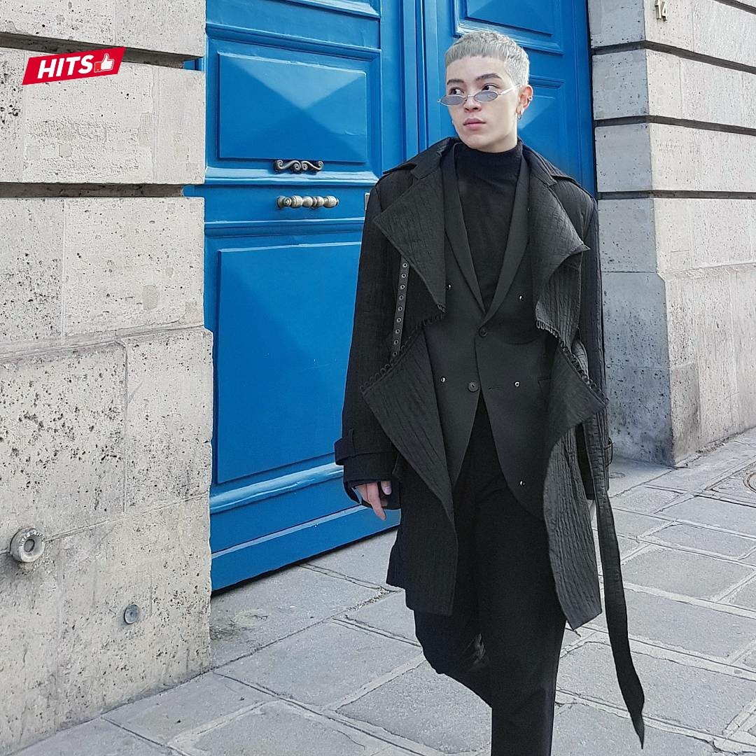 Mải miết “chơi đùa” với tông màu đen nhưng dường như Kelbin chưa bao giờ khiến khán giả chán ngán với những outfit chất chơi của mình. Bộ cánh mới nhất được chàng stylist diện tại Paris Fashion Week là set đồ với áo thun cổ lọ, phối layer cùng áo khoác dáng dài của một NTK trong nước. Để tạo điểm nhấn, anh chàng cũng không quên đeo thêm kính mát tin hin - món phụ kiện “hot” đang gây bão hiện nay.