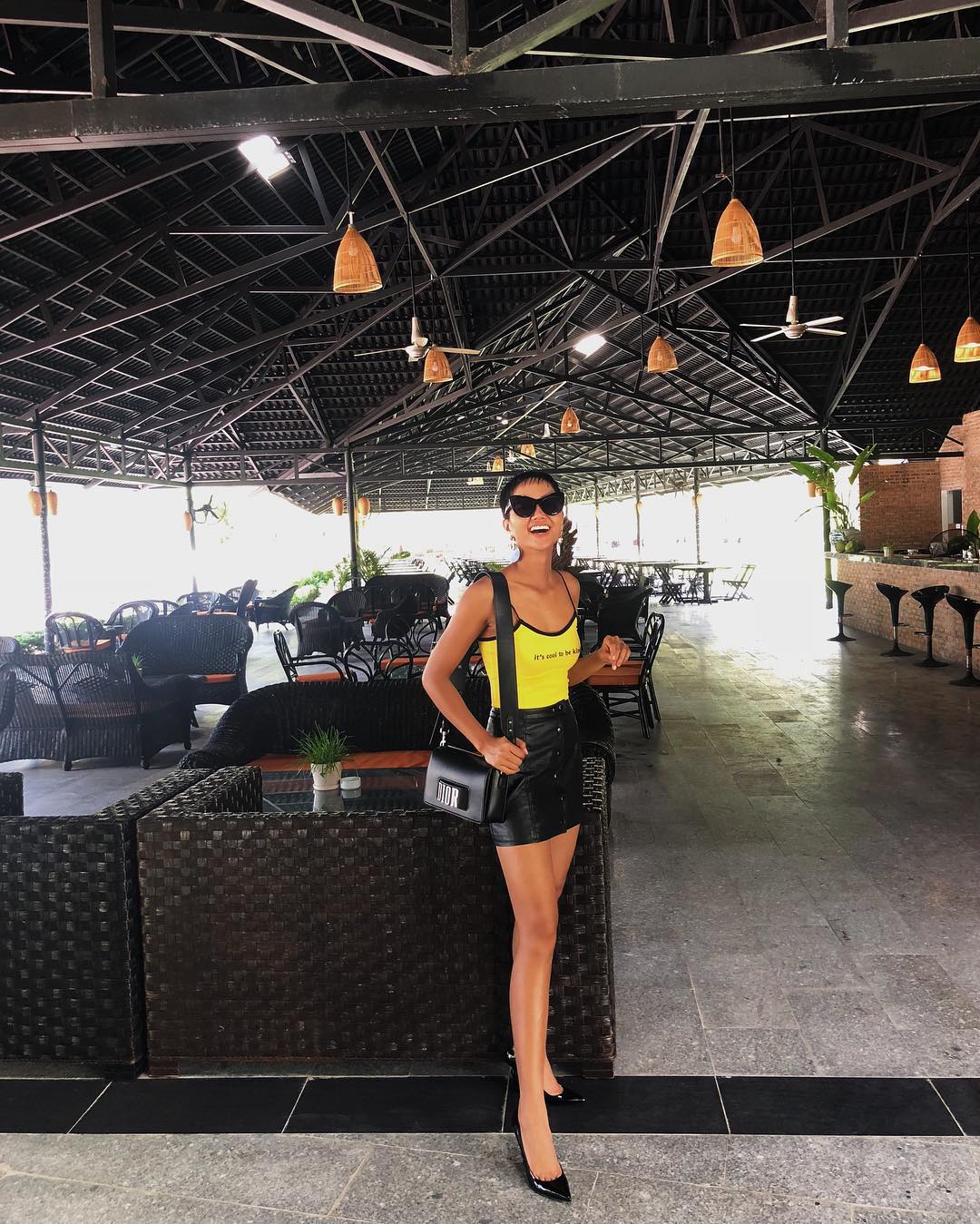 Ngoài khoe dáng sexy cùng đồ bơi, các người đẹp Vbiz còn khiến fan hâm mộ thích thú khi liên tục đăng tải những hình ảnh street style với váy ngắn hoặc quần short khoe đùi thon, chân dài. Đơn cử như set đồ đơn giản gồm chân váy da và áo hai dây của H'hen Niê.