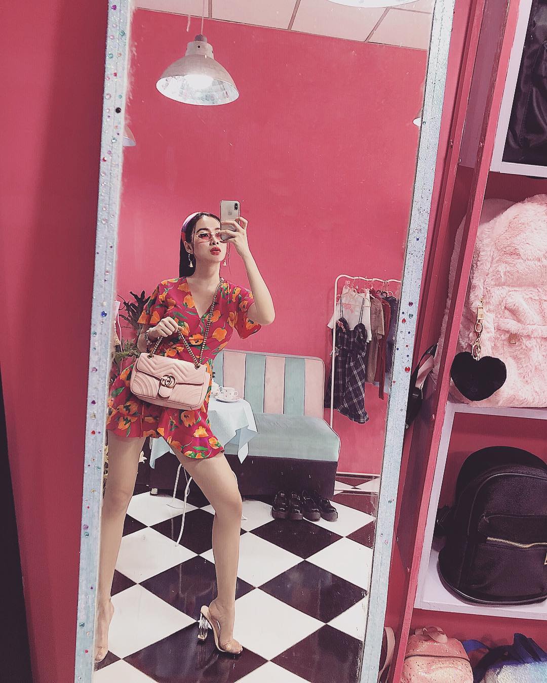 Cùng nhập hội mỹ nhân Vbiz khoe chân dài, nhưng Angela Phương Trinh lại chuyển sang khoe chân cùng váy ngắn in hoa nhí đậm chất mùa hè.