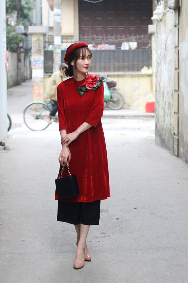 Hot girl Salim nhanh tay diện một thiết kế áo dài bằng chất liệu nhung hot trend mùa lạnh hút mắt trên phố.